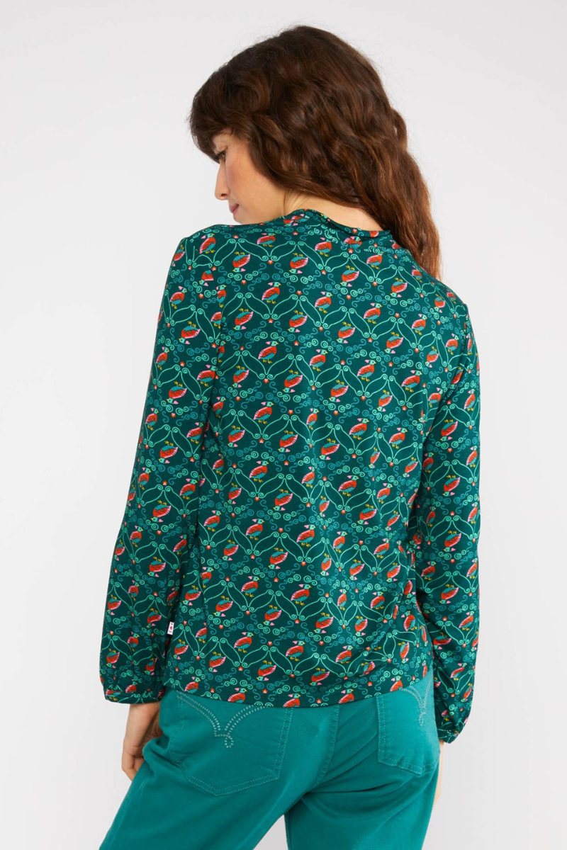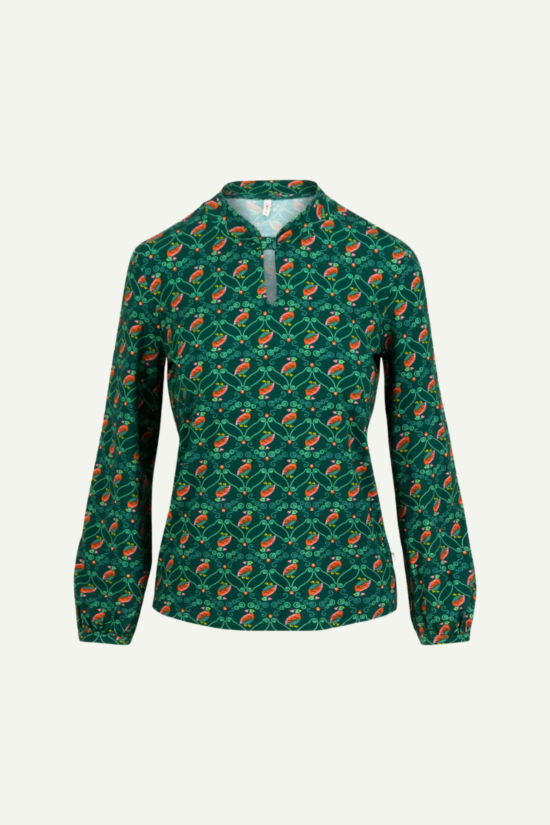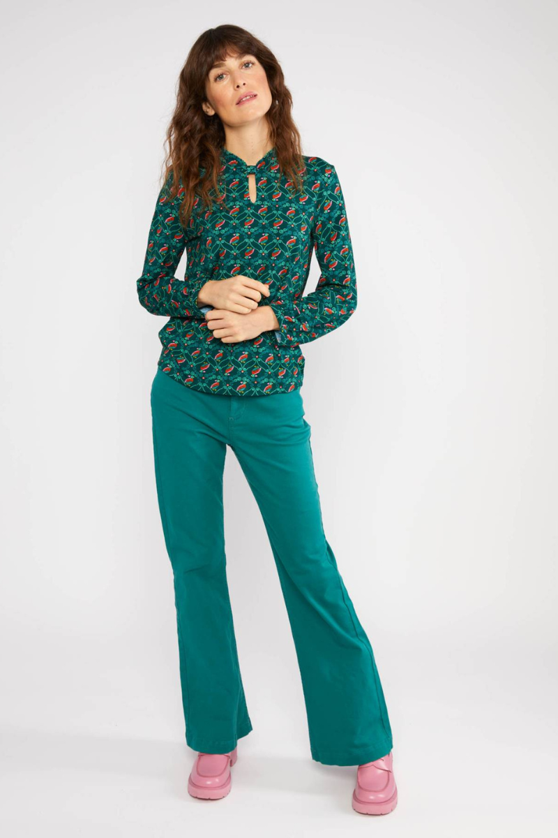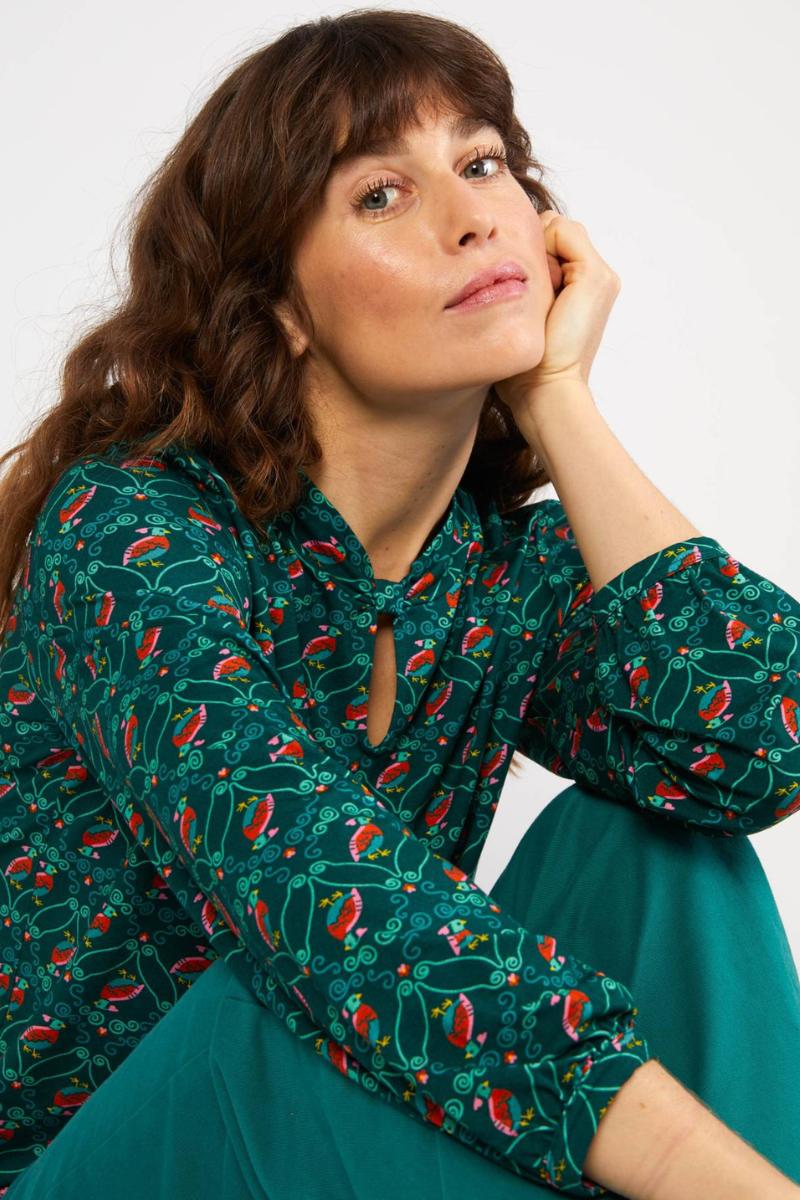 Dieses Shirt mit langen Ärmeln aus weichem Viskose-Jersey ist nicht nur elegant, sondern auch praktisch. Der raffinierte Knotenausschnitt und der Dekolleté-Schlitz verleihen ihm einen femininen Blusen-Charakter. Die weiten Ärmel und schmalen Bündchen sorgen für einen bequemen und stilvollen Look. Perfekt für den Alltag oder besondere Anlässe.