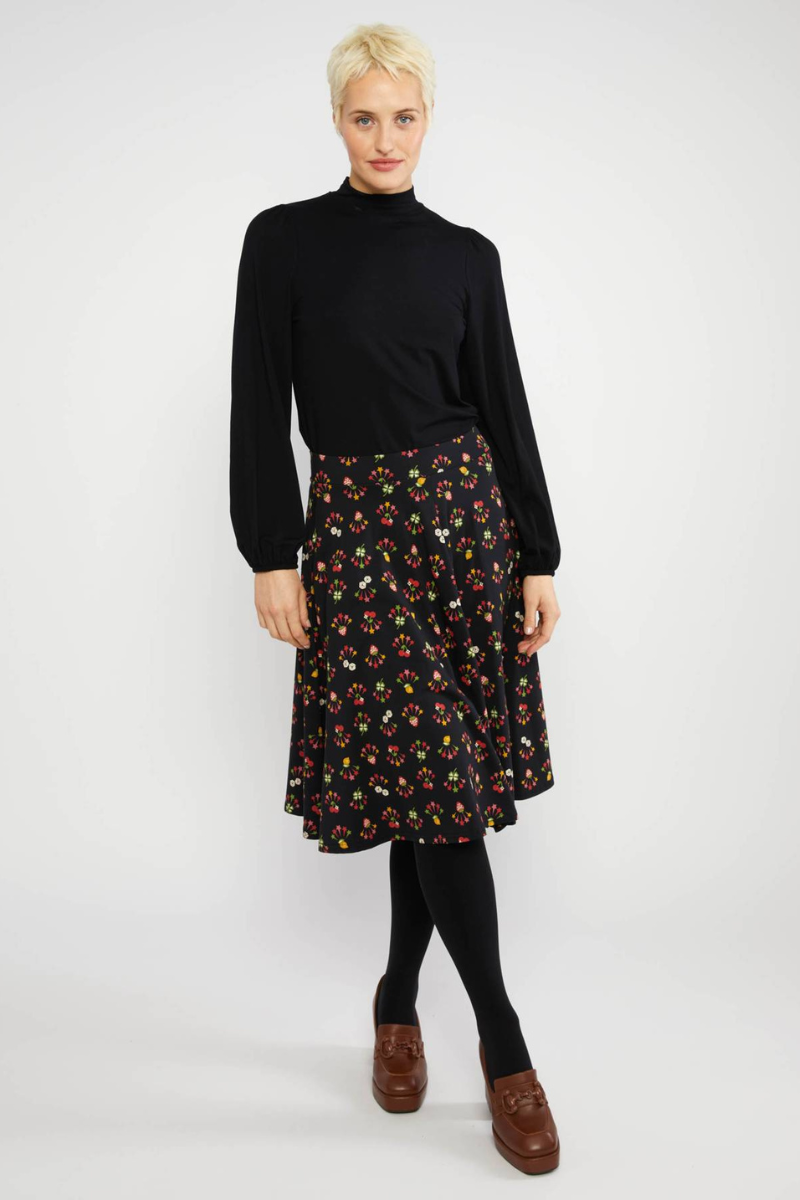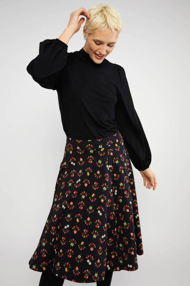 Dieser knielange Rock aus anschmiegsamem Bio-Baumwoll-Jersey ist nicht nur gemütlich, sondern auch ein echter Hingucker. Der elastische Taillenbund und die Teilungsnähe in vorder-/rückseitiger Mitte setzen deine Figur perfekt in Szene. Die weit schwingende Silhouette verleiht dir einen lässig-femininen Look.