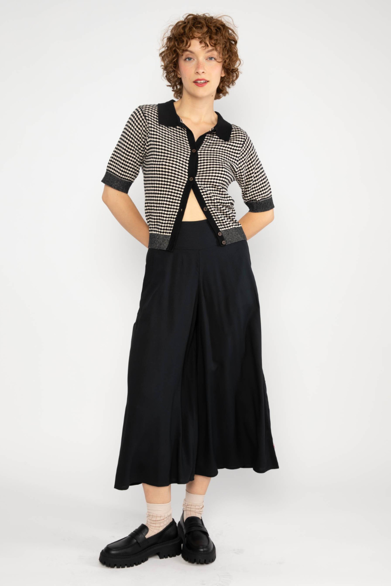 Diese Culotte-Hose von Blutsgeschwister ist perfekt für den Sommer geeignet! Hergestellt aus sanft fließendem Viskosegewebe, bietet sie einen bequemen Taillenbund mit elastischem Rückenteil und schräge Taschen auf Hüfthöhe für zusätzlichen Komfort. Die weite, ausgestellte Silhouette sorgt für einen lässigen Look und reicht bis zur Wadenlänge.
