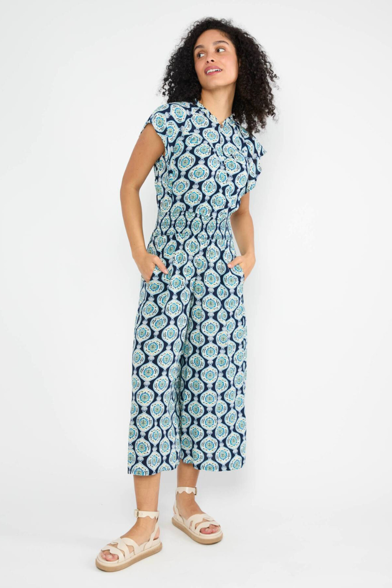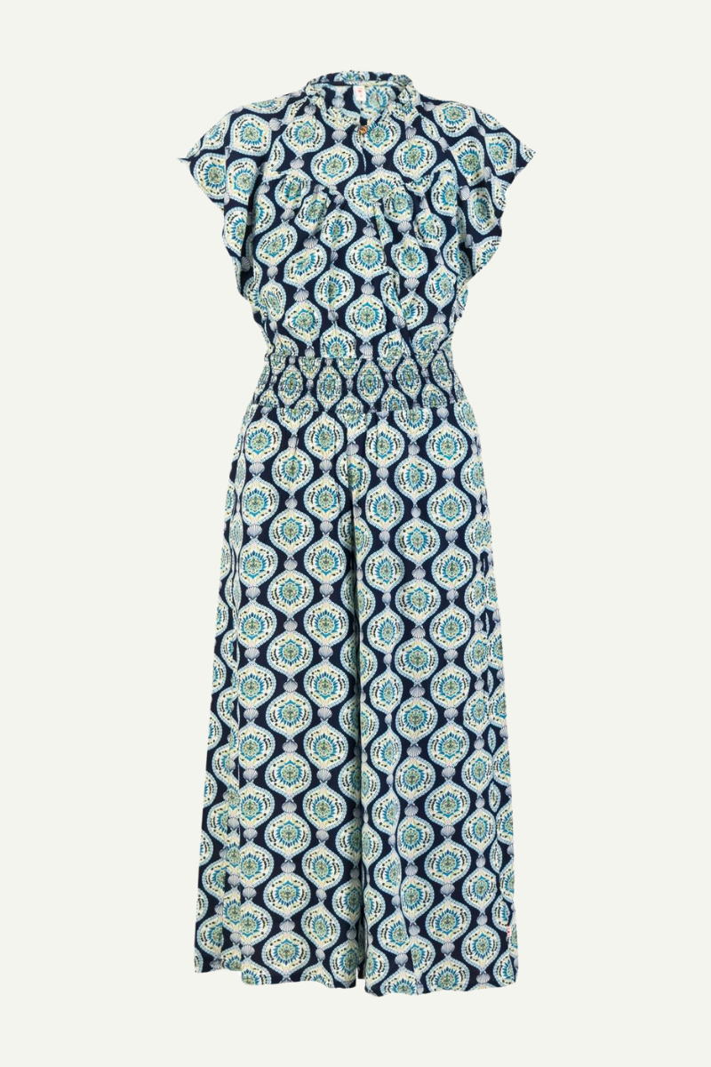 Dieser Jumpsuit von Blutsgeschwister aus weichem Viskose-Webstoff umschmeichelt sanft die Figur und sorgt für ein bequemes Tragegefühl. Der Wickelausschnitt mit Kräuselungen und der schmale Rüschenkragen verleihen einen romantischen Touch. Die kurzen Fledermausärmel und der elastische Taillenbund bieten zusätzlichen Komfort. Praktische seitliche Eingriffstaschen und das weit ausgestellte, wadenlange Bein machen diesen Jumpsuit zum perfekten Begleiter für den Sommer.