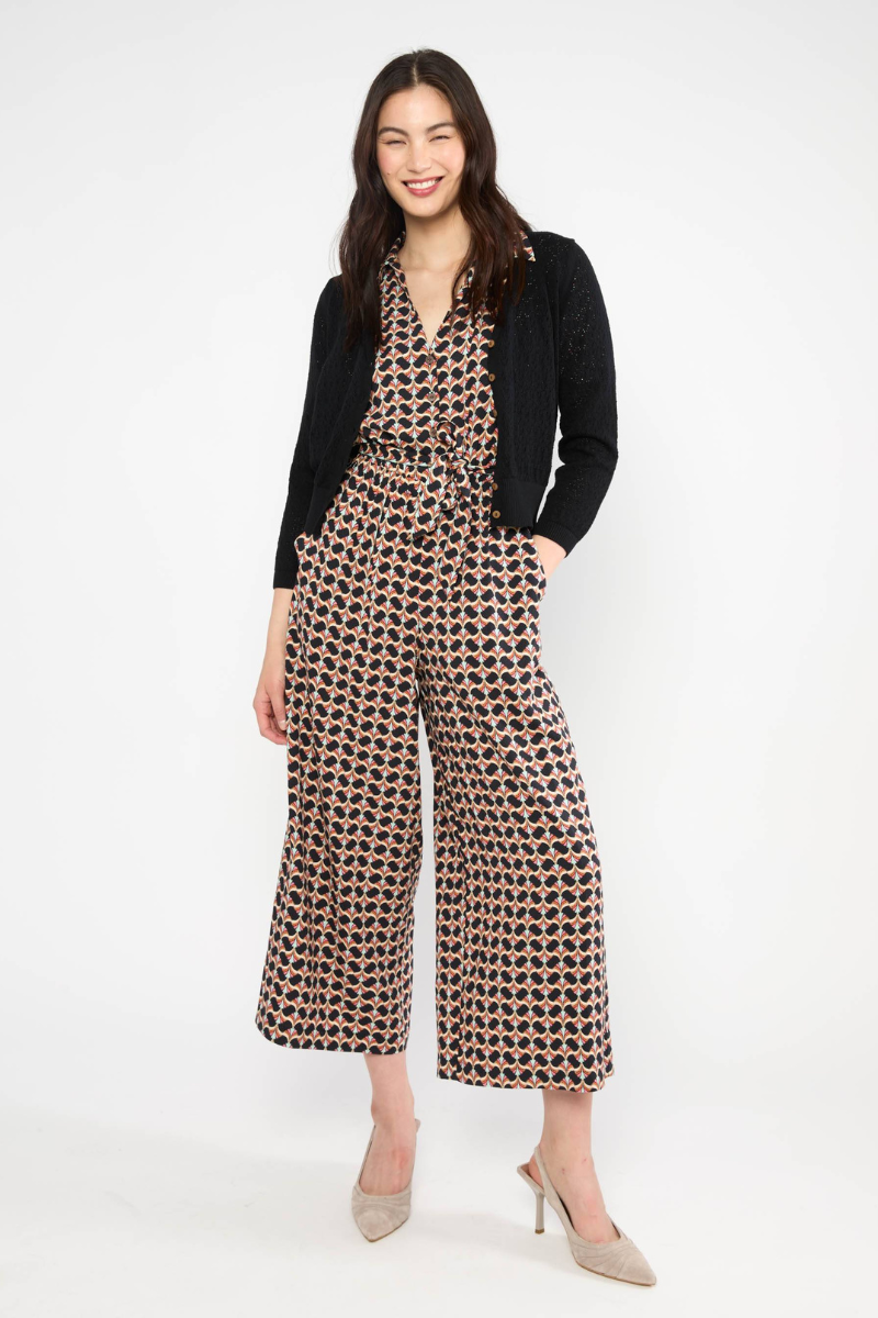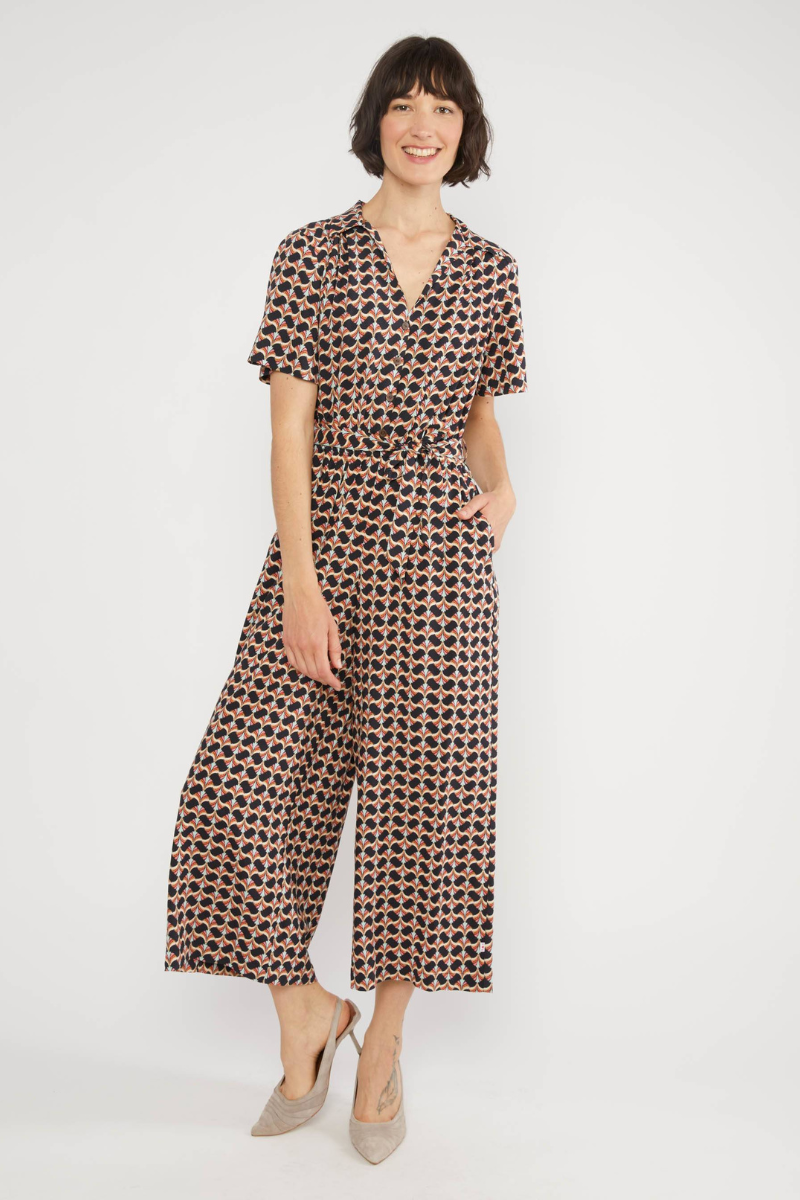 Mit Jumpsuit Charming Steps Rainbow Brush von Blutsgeschwister aus sanft fließendem Viskosegewebe verwandelst du jedes Outfit in einen entspannten Hingucker. Der elegante Kragen mit Knopfverschluss am Nacken und die unkomplizierte V-Ausschnitt sorgen für einen lässigen Look. Die weiten, lockeren Ärmel und der abnehmbare Gürtel in Taillenhöhe betonen deine Figur. Praktische Taschen und der Knopfverschluss auf der Vorderseite runden das Design ab. Mit dem tiefen Rückenausschnitt und dem weiten Schlag an den Beinen in sommerlicher Länge, siehst du einfach bezaubernd aus.