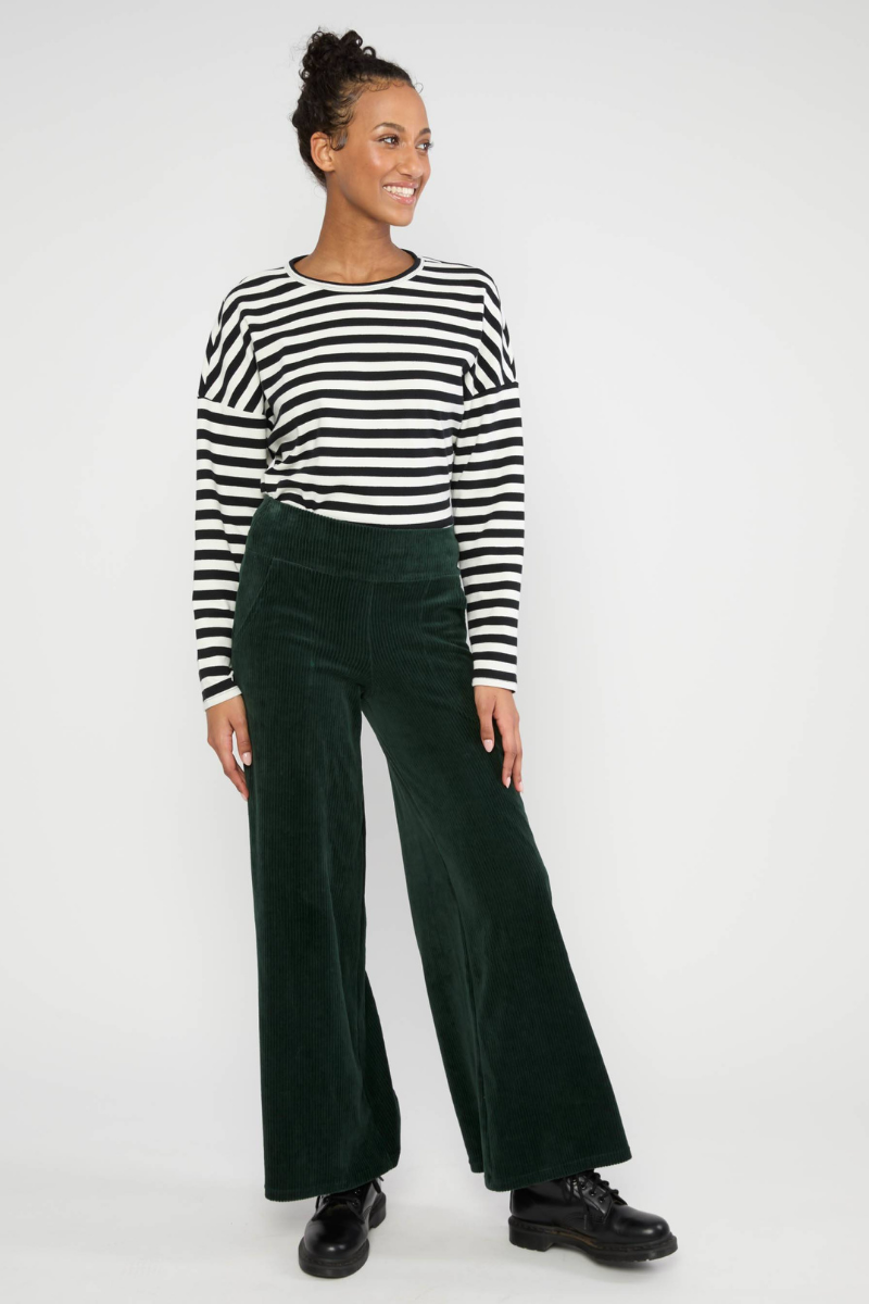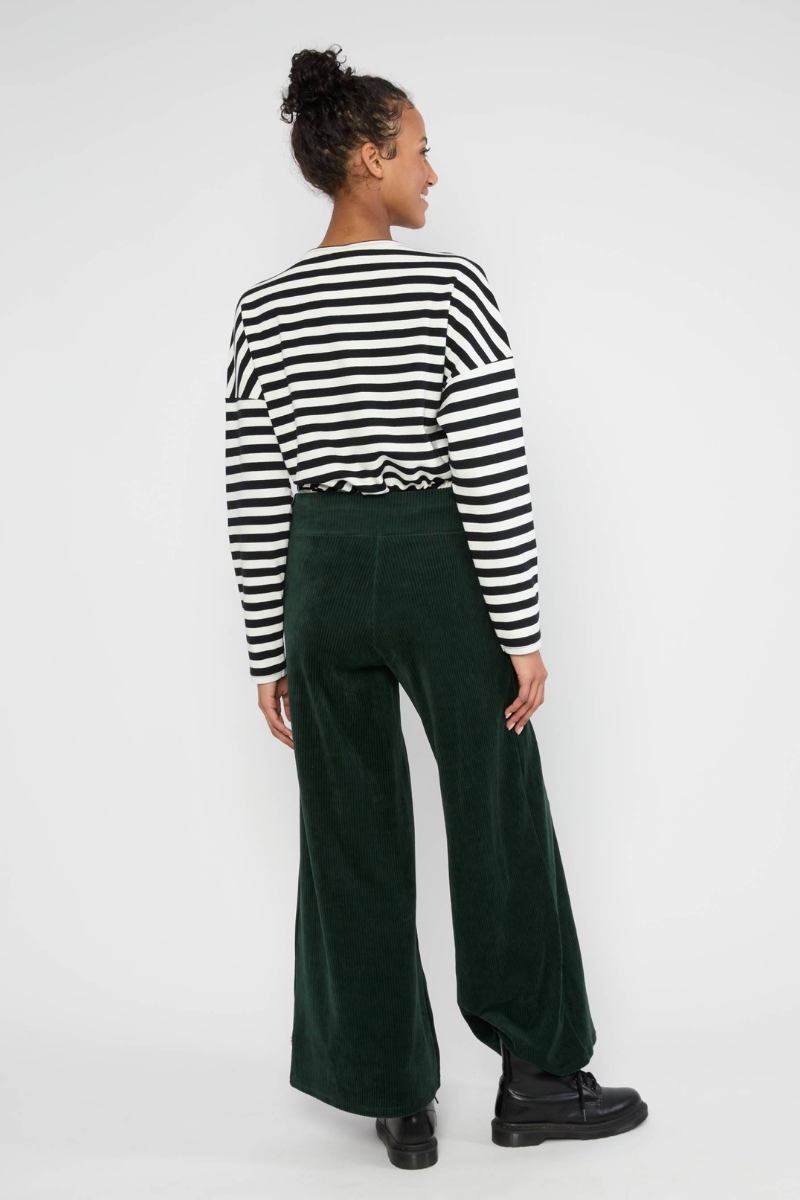 Die Hose Jolly Marleen von BLUTSGESCHWISTER in feiner Cord-Optik überzeugt mit einem breiten, bequemen Bund und knöchellanger, weit ausgestellter Form für einen modernen Look. Aus weichem Bio-Baumwollstoff gefertigt, bietet sie angenehmen Tragekomfort und praktische Eingrifftaschen auf Hüfthöhe. Die zeitlosen, unifarbenen Töne machen sie vielseitig kombinierbar – ideal für entspannte Alltagsoutfits im Herbst und Winter. Ob zu Sneakers oder Boots, diese High-Waist-Culotte bringt Stil und Komfort mühelos zusammen.