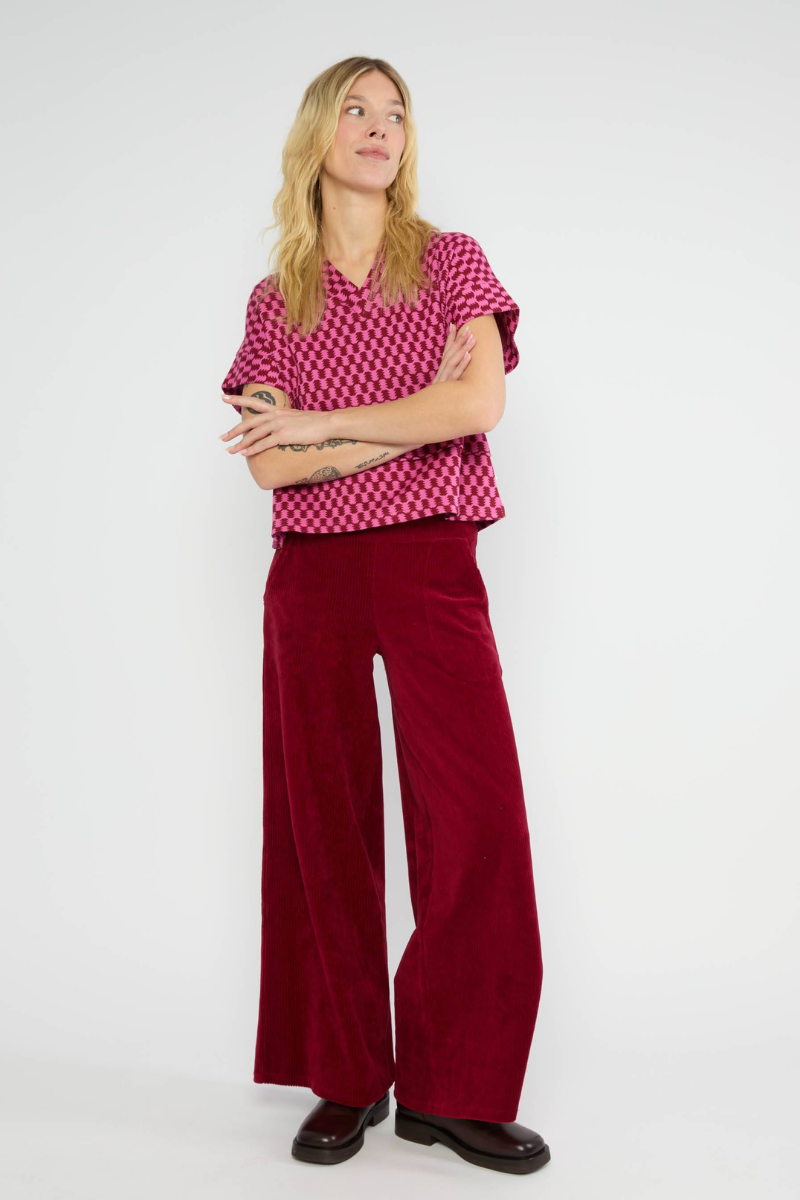 Die Hose Jolly Marleen von BLUTSGESCHWISTER in feiner Cord-Optik überzeugt mit einem breiten, bequemen Bund und knöchellanger, weit ausgestellter Form für einen modernen Look. Aus weichem Bio-Baumwollstoff gefertigt, bietet sie angenehmen Tragekomfort und praktische Eingrifftaschen auf Hüfthöhe. Die zeitlosen, unifarbenen Töne machen sie vielseitig kombinierbar – ideal für entspannte Alltagsoutfits im Herbst und Winter. Ob zu Sneakers oder Boots, diese High-Waist-Culotte bringt Stil und Komfort mühelos zusammen.