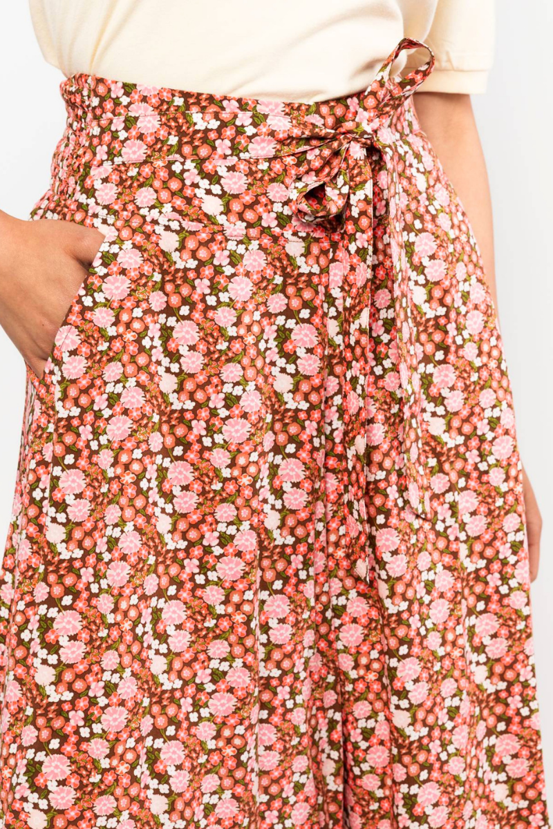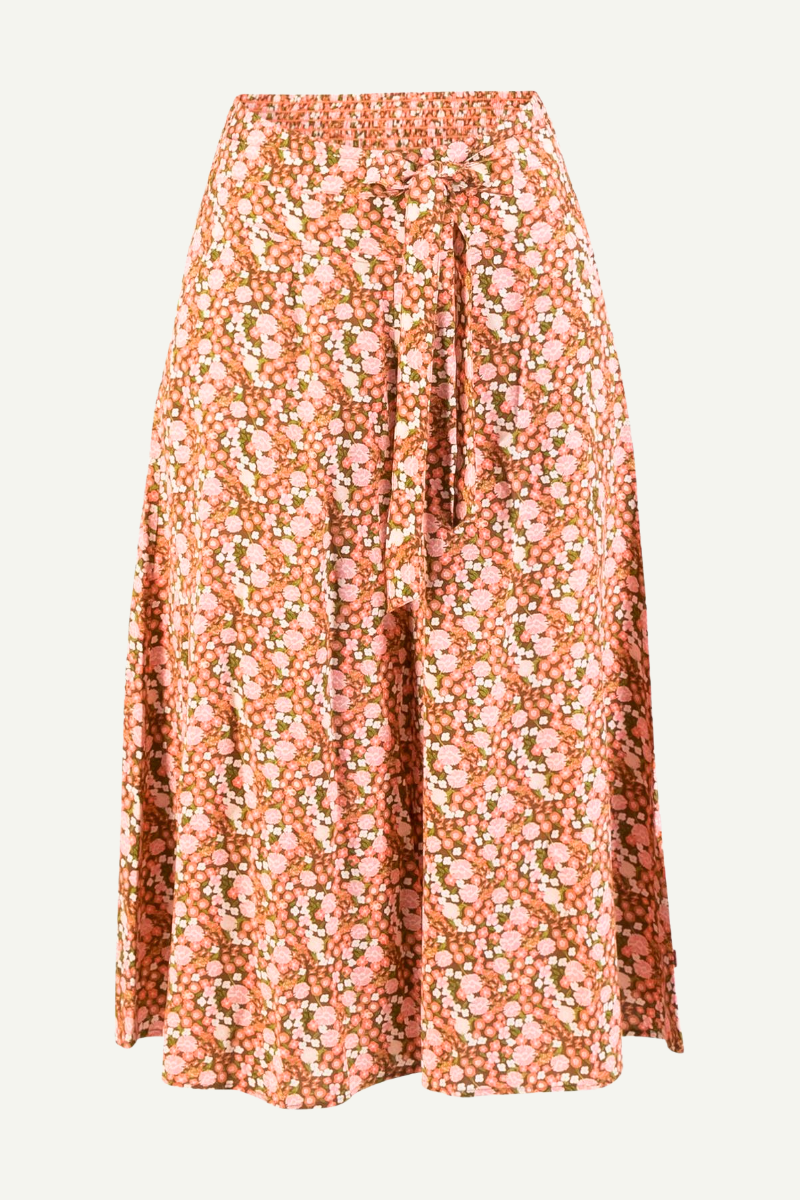 Leichte Sommer Culotte Hose von BLUTSGESCHWISTER aus sanftem Viskose-Webstoff mit oversized Schnitt und wadenlanger Länge. Der seitlich angesetzte Bindegürtel ermöglicht variable Stylings und passt sich flexibel an.