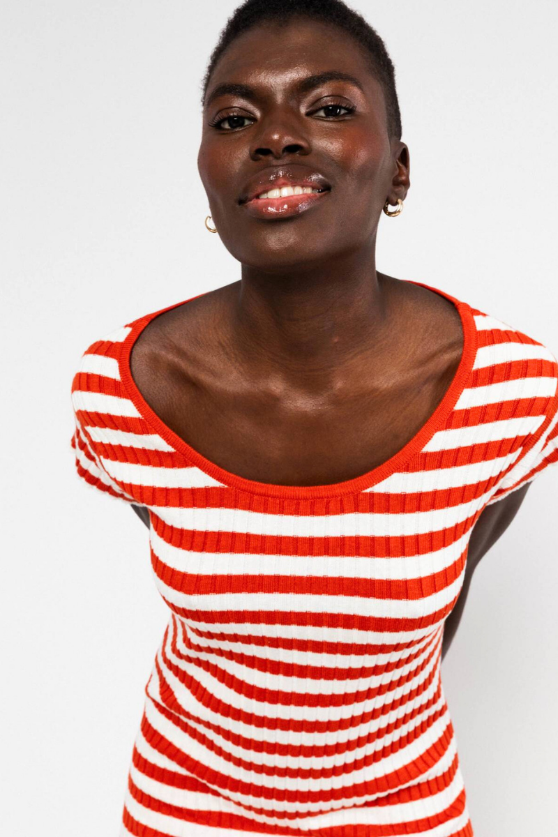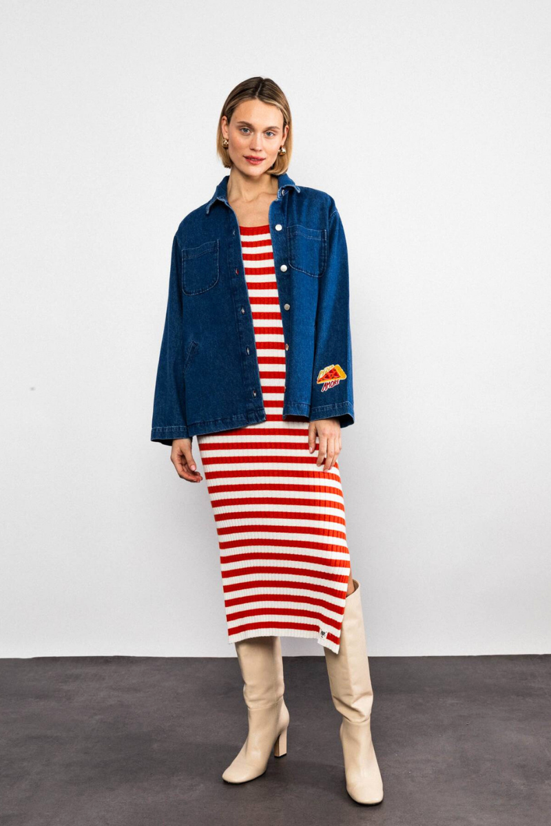 Entdecke das sommerleichte Strickkleid von BLUTSGESCHWISTER mit zeitlosem Charme. Das wadenlange Kleid besticht durch seinen klassischen Rundhalsausschnitt und schmal geschnittene Ärmel, die eine elegante, figurbetonte Silhouette schaffen. Die gerade Rock-Silhouette wird durch einen dekorativen Seitenschlitz am Saum akzentuiert. Weiche Rippenstrukturen verleihen dem Kleid Struktur und Komfort für den ganzen Tag. Ein vielseitiges Basics-Piece, das sich mühelos zu verschiedenen Looks kombinieren lässt und feminine Lässigkeit ausstrahlt.