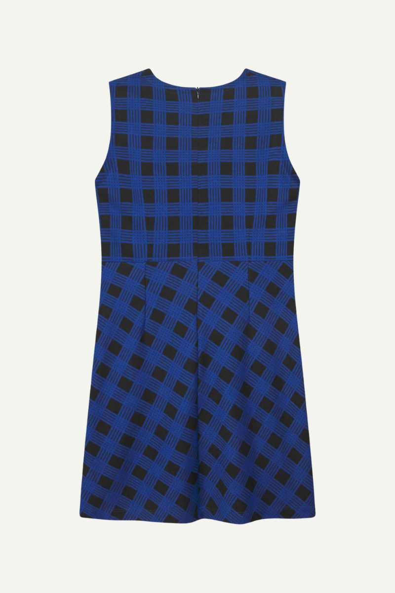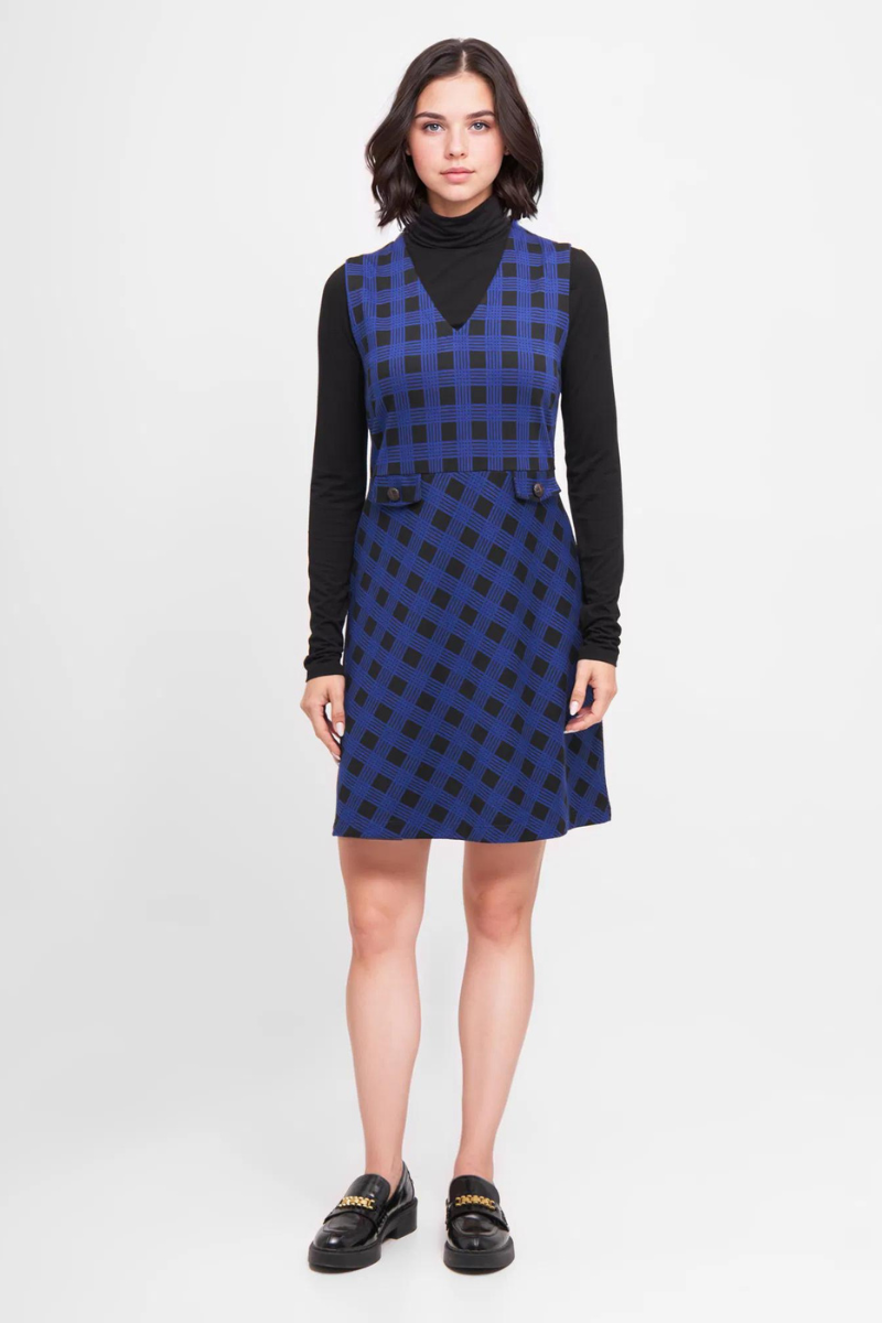 Das Kleid von Mademoiselle YéYé bietet sowohl Komfort als auch Stil. Der elastische Strick Jacquard sorgt für eine leichte, taillierte Silhouette und einen leicht ausgestellten Saum. Der V-Ausschnitt und die ärmellose Gestaltung verleihen diesem Kleid eine moderne Note. Mit dem nahtfeinen Reißverschluss in der hinteren Mitte und der Teilungsnaht auf Taillenhöhe ist es zudem praktisch und schmeichelhaft. Abgerundet wird das Kleid durch die dekorativen Patten mit Knopf.
