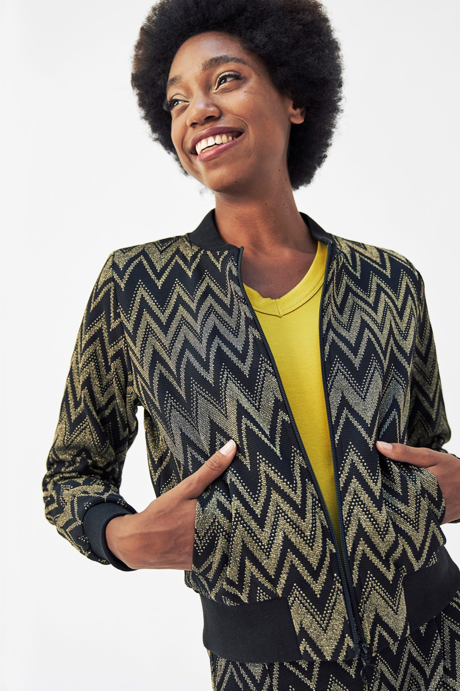 Collegejacke aus Strick-Jacquard mit Glitzer-Garn von Mademoiselle YéYé