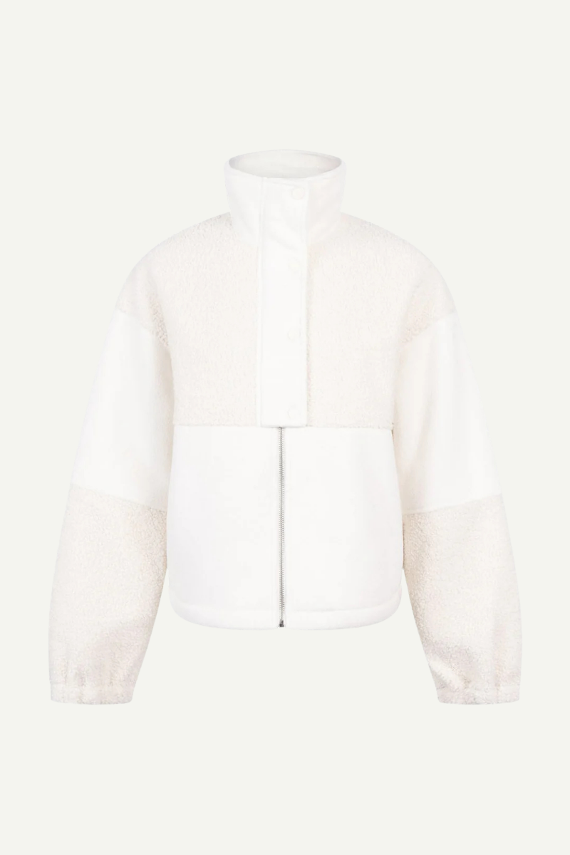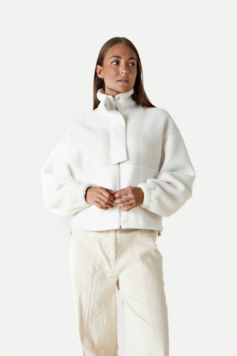 Die Jacke "Aljennie Egg White" von ANOTHER LABEL aus weichem Terry-Fleece ist dein neuer Begleiter für entspannte Tage. Mit ihrem lockeren Schnitt bietet sie höchsten Tragekomfort, während der Reißverschluss und die elastischen Bündchen für angenehme Wärme sorgen. Die verstellbare Kordel im Saum ermöglicht eine individuelle Passform. Praktische Seitentaschen runden das funktionale Design ab – perfekt, um schnell und bequem stilvoll unterwegs zu sein.