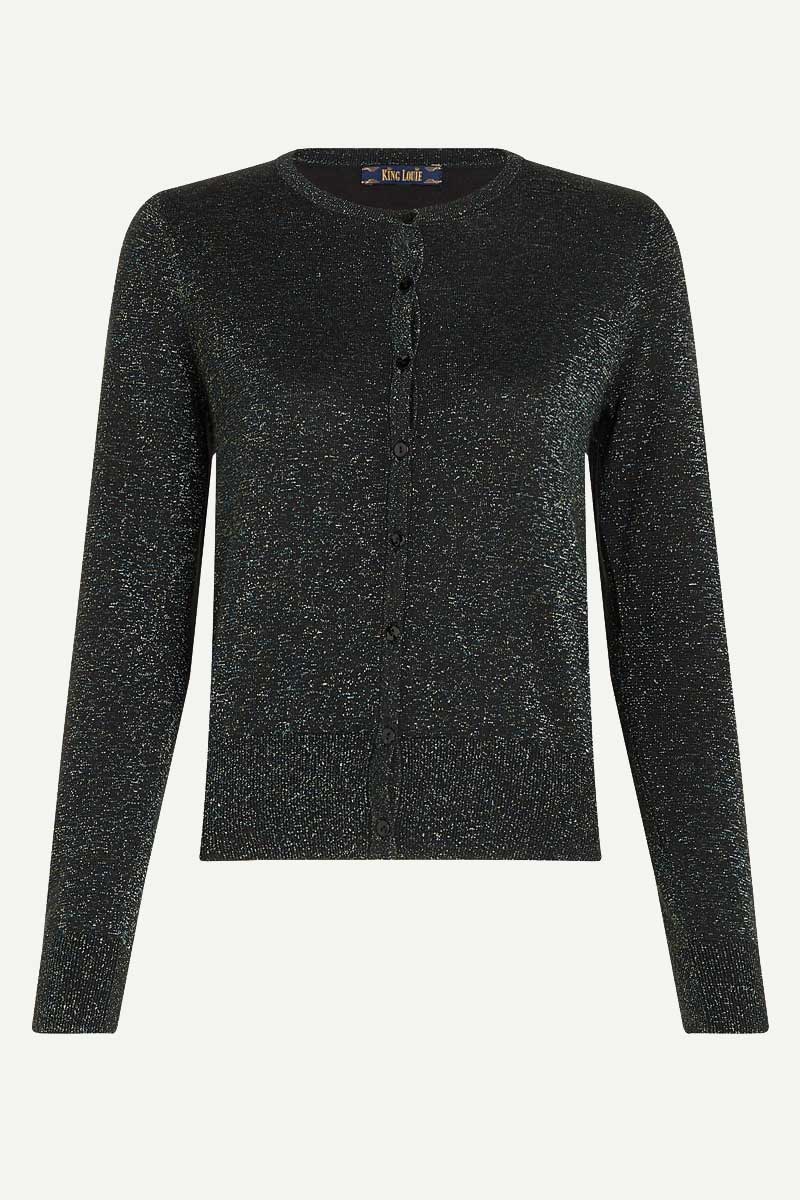 Lurex-Cardigan mit Glitzer aus Bio-Baumwolle, taillierte Passform, Rundhalsausschnitt, durchgehende Knopfleiste, lange Ärmel Rippbündchen an Ärmelenden und Saum, leichter Feinstrick.