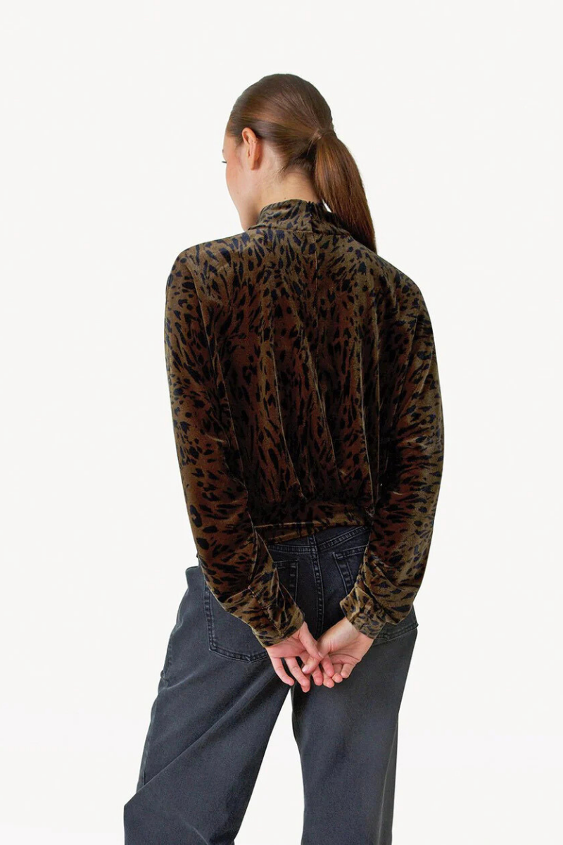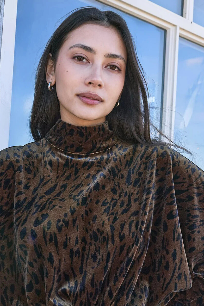 Das Top Alarwen von ANOTHER LABEL überzeugt mit edlem Samt in einem auffälligen Animal-Gradient-Design. Die entspannte Passform und die dezente Taillierung sorgen für eine schmeichelhafte Silhouette. Ein verdeckter Reißverschluss auf der Rückseite hält den Look puristisch und elegant. Perfekt kombiniert mit eleganten Hosen oder Jeans – für einen stilvollen Auftritt mit einem Hauch von Glamour.