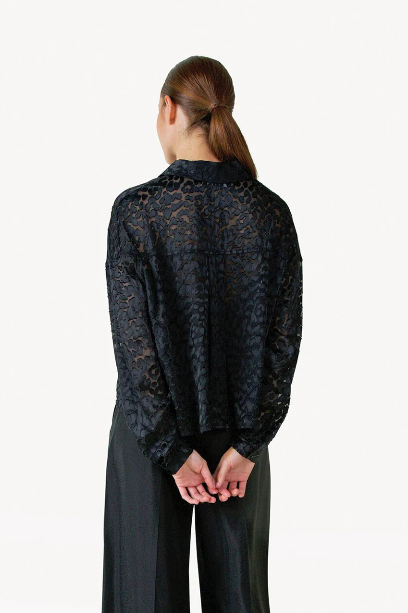 Die Bluse Alilana Longseeve Black verbindet lässige Eleganz mit einem Hauch von Verführung. Aus leichtem, transparentem Satin-Jaquard gefertigt, besticht sie durch einen entspannten Schnitt und überschnittene Schultern. Ob solo getragen für einen femininen, dezenten Transparenzeffekt oder als stylishes Layering-Teil.