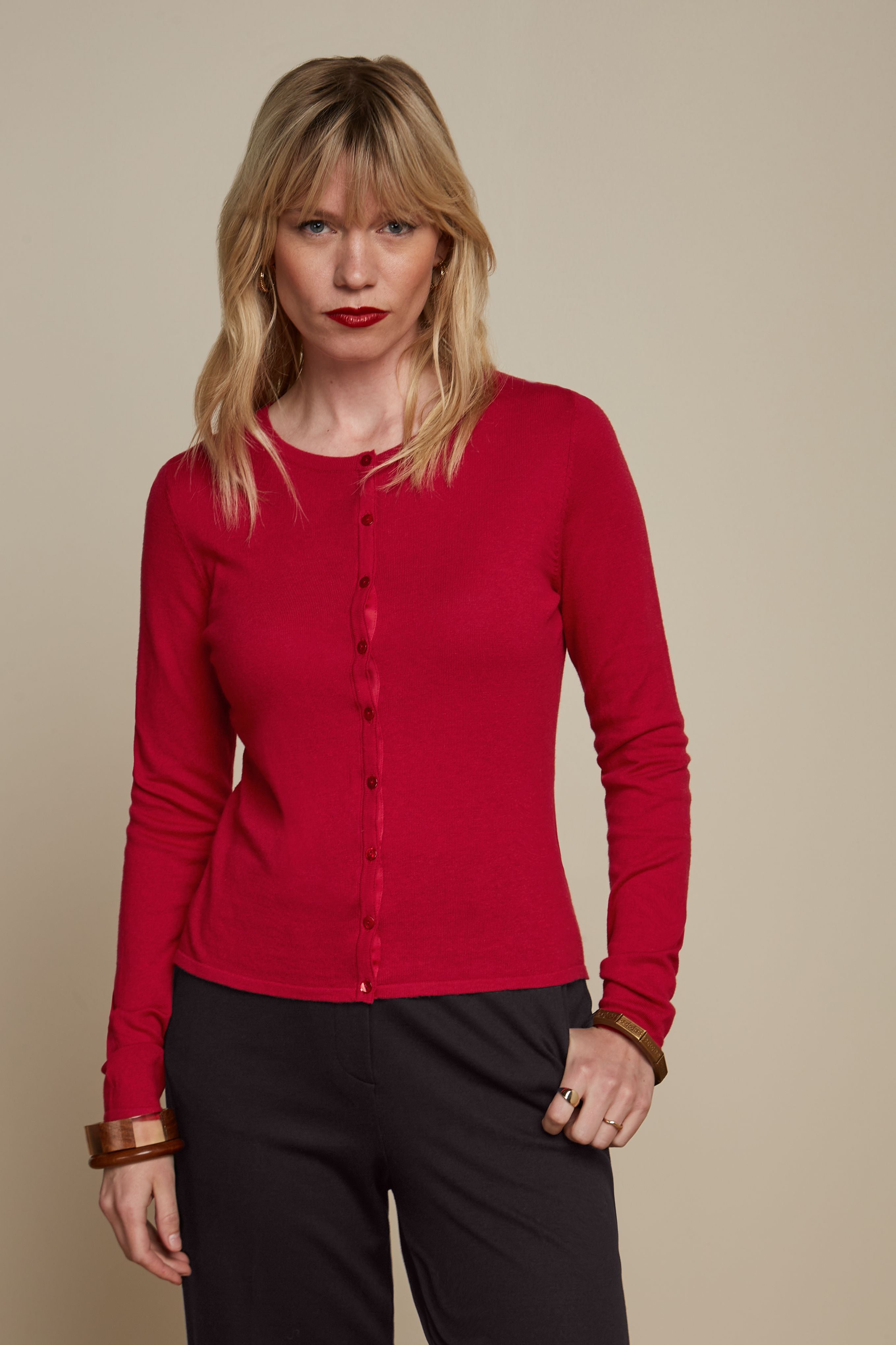 Länge: 56 cm (M) Das Model trägt Größe: S Größe des Models: 1,75 m Originaltitel: Cardi Roundneck Cocoon Icon Red