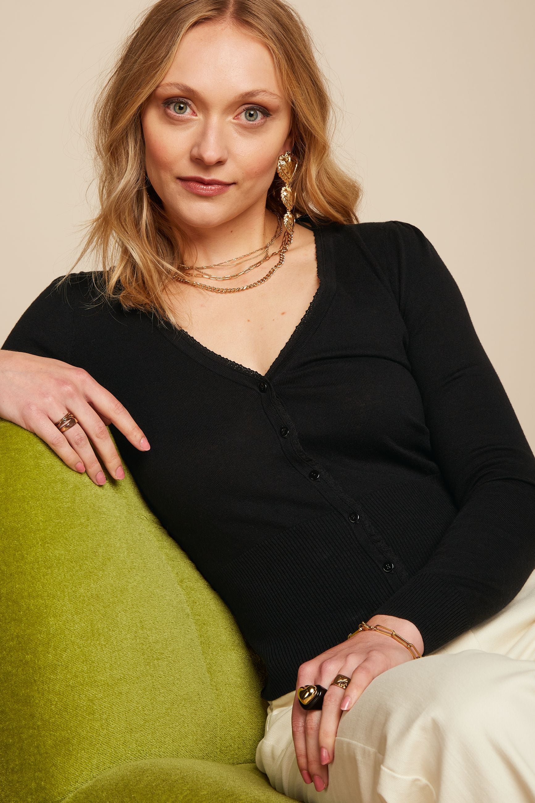 Dieser Cardigan besticht durch seine taillierte Passform und den eleganten V-Ausschnitt. Mit seinen langen Ärmeln und der durchgehenden Knopfleiste ist er ein zeitloser Klassiker. Die gerippten Abschlussbündchen verleihen dem Cardigan einen zusätzlichen Hauch von Raffinesse. Hergestellt aus einem Material-Mix aus Bio-Baumwolle und Seide, bietet er nicht nur ein angenehmes Tragegefühl, sondern ist auch umweltfreundlich.