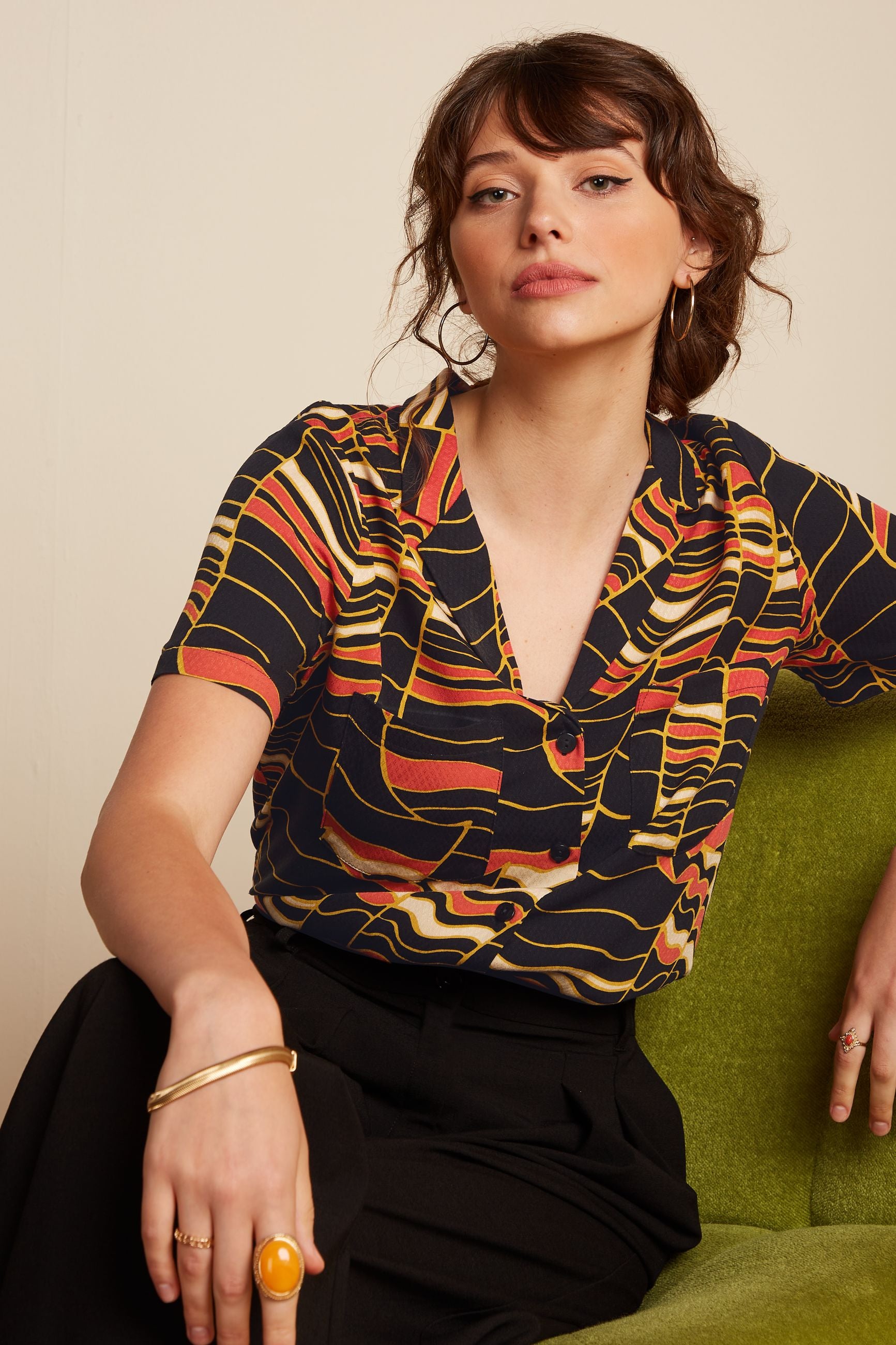 Die Bluse von King Louie ist aus reiner Viskose gefertigt und überzeugt mit einem geraden Schnitt sowie kurzen Ärmeln. Der Reverskragen und die aufgesetzten Taschen auf der Brust verleihen der Bluse eine lässige Note. Der feine Webstoff in fließender Qualität besteht zu 100% aus LENZING (TM) ECOVERO (TM) Viskose und bietet höchsten Tragekomfort.