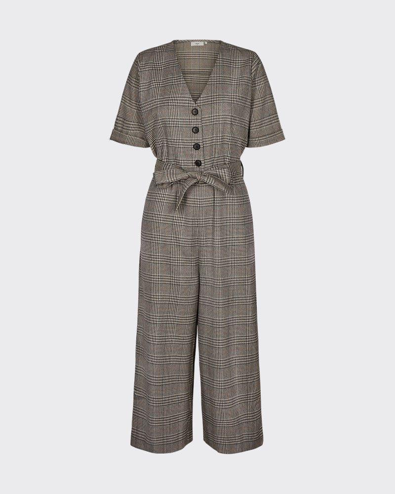 Superschön geschnittener Jumpsuit von Minimum. Taillengürtel für die perfekte Passform. Das Bein ist Knöchellang und weit geschnitten.