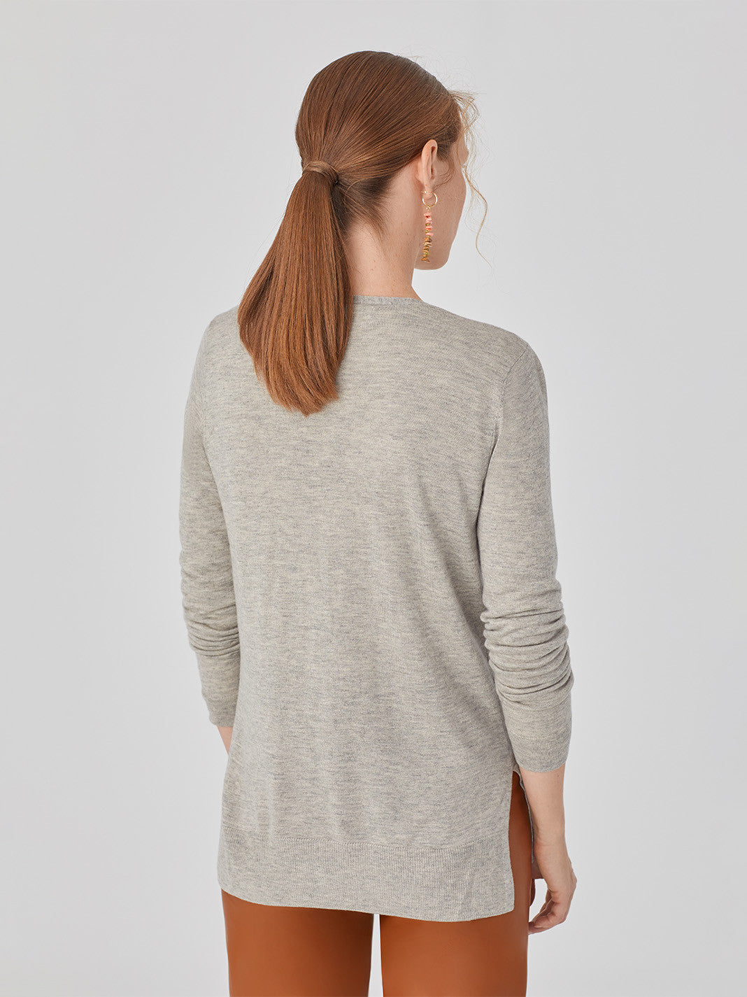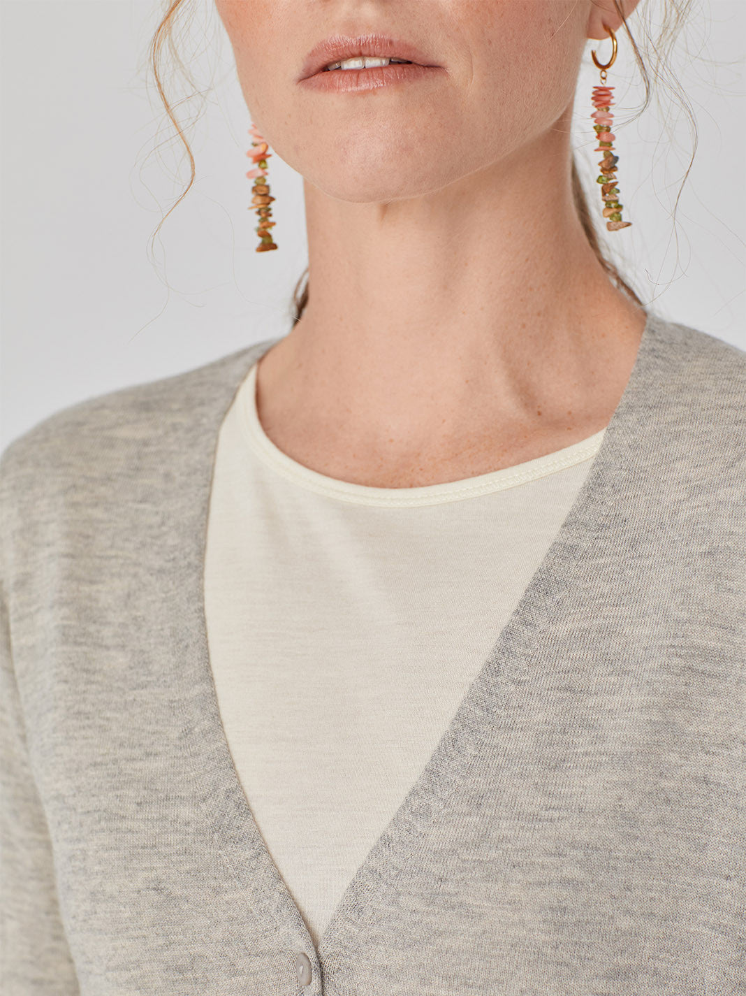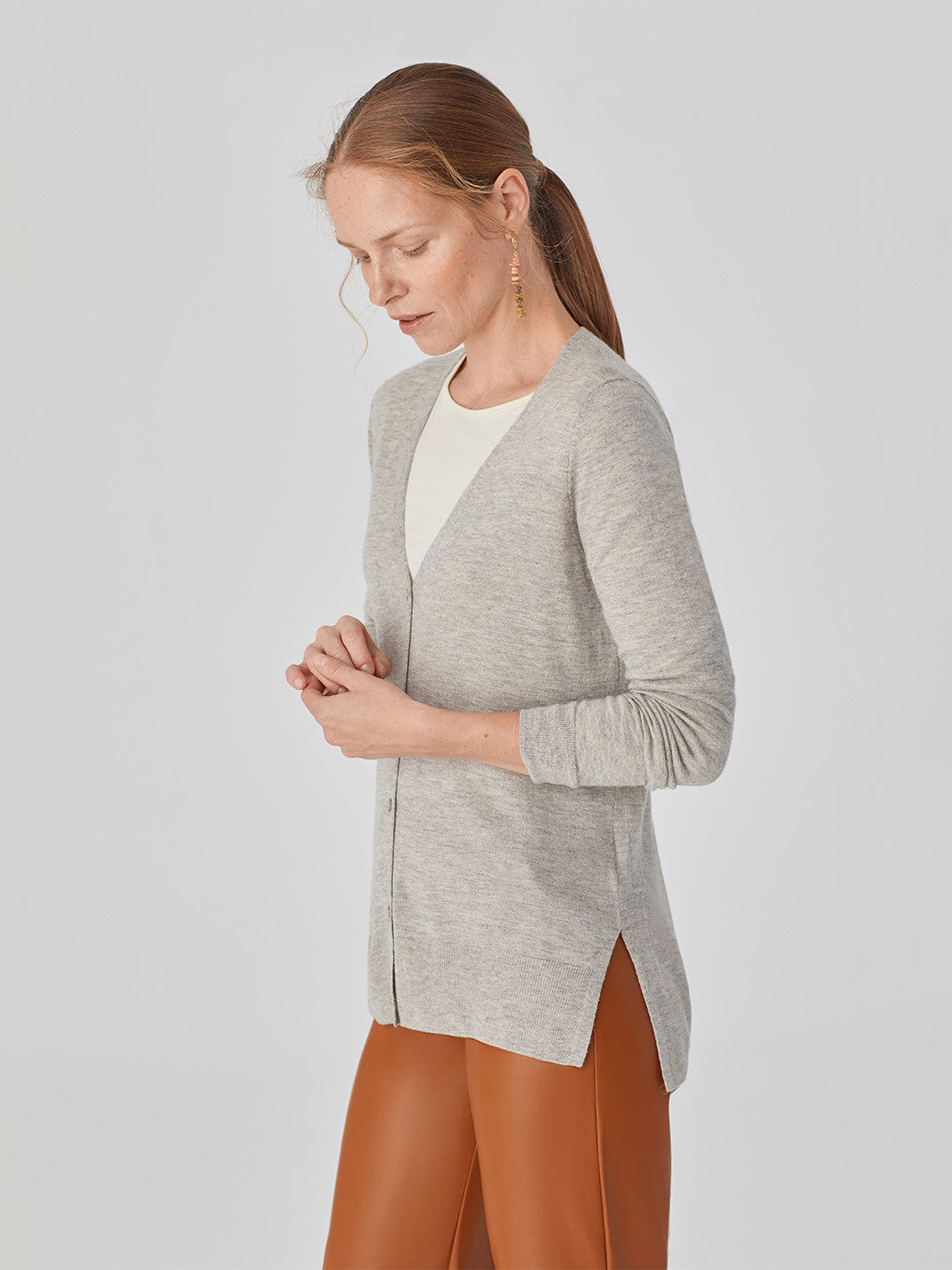 Langer Basic Woll-Cardigan mit V-Ausschnitt und durchgehender Knopfleiste