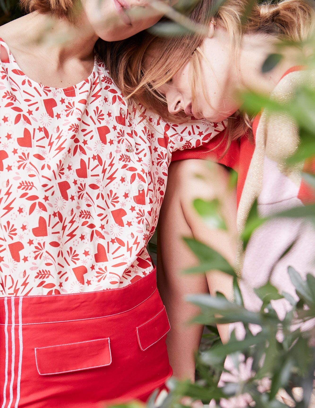 Bluse mit seitlicher durchgehender Knopfleiste, Oversize-Schnitt