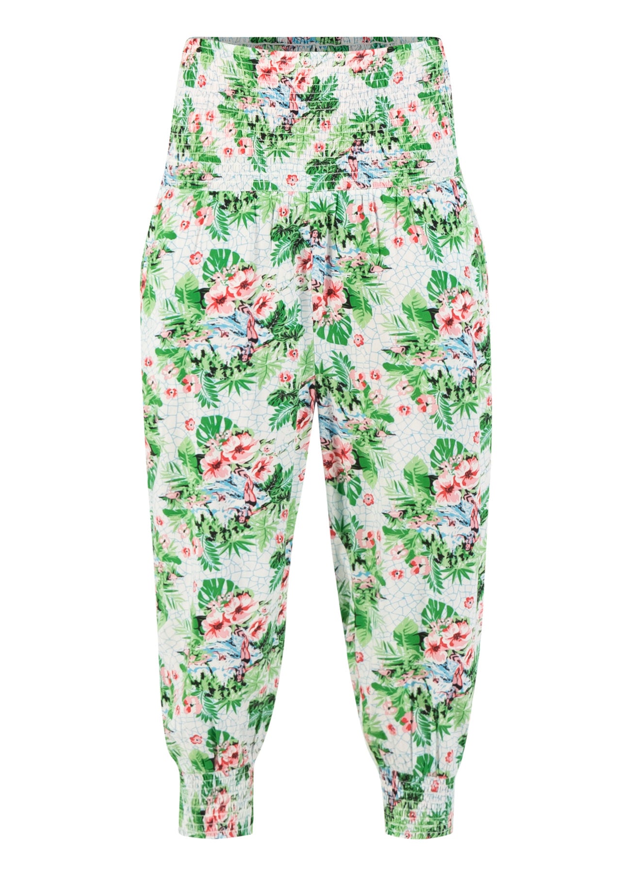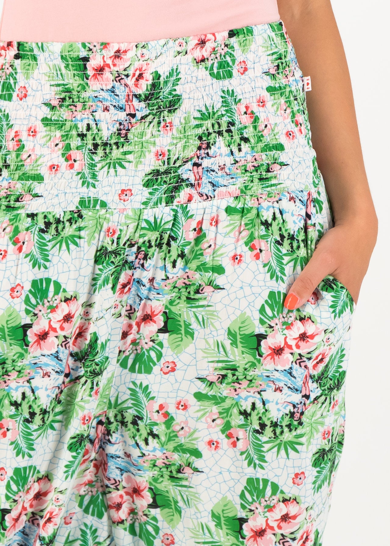 Lässige Pumphose aus sanft fließendem Viskose-Webstoff, mit Farben und Mustern, inspiriert von den tropischen Natur- und Kultur-Köstlichkeiten Floridas! Die luftig-leichte Hose ist mit ihrem weiten Schnitt und der überaus entspannten Passform ein textiles Muss für alle Freiheitsliebenden Blutsschwestern.