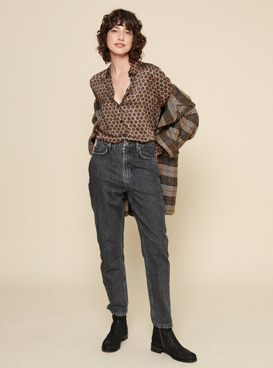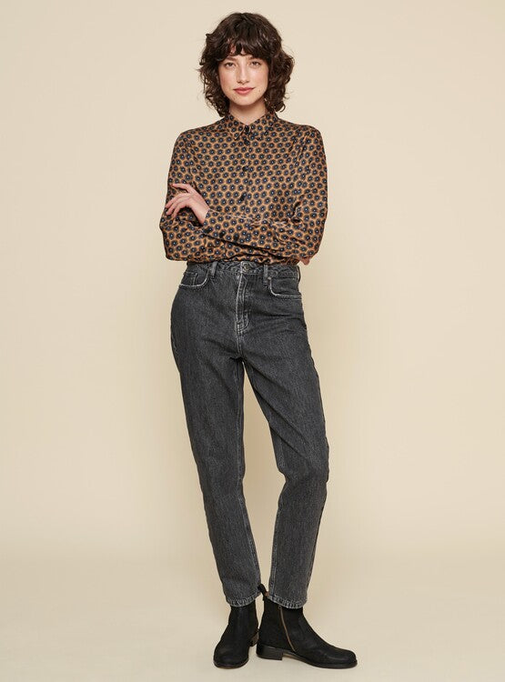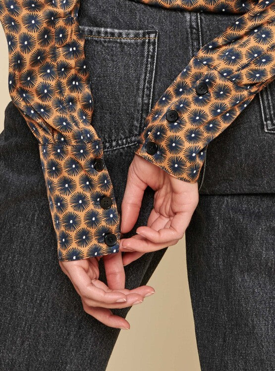 Print Bluse aus Viskose mit durchgehender Knopfleiste und Kragen