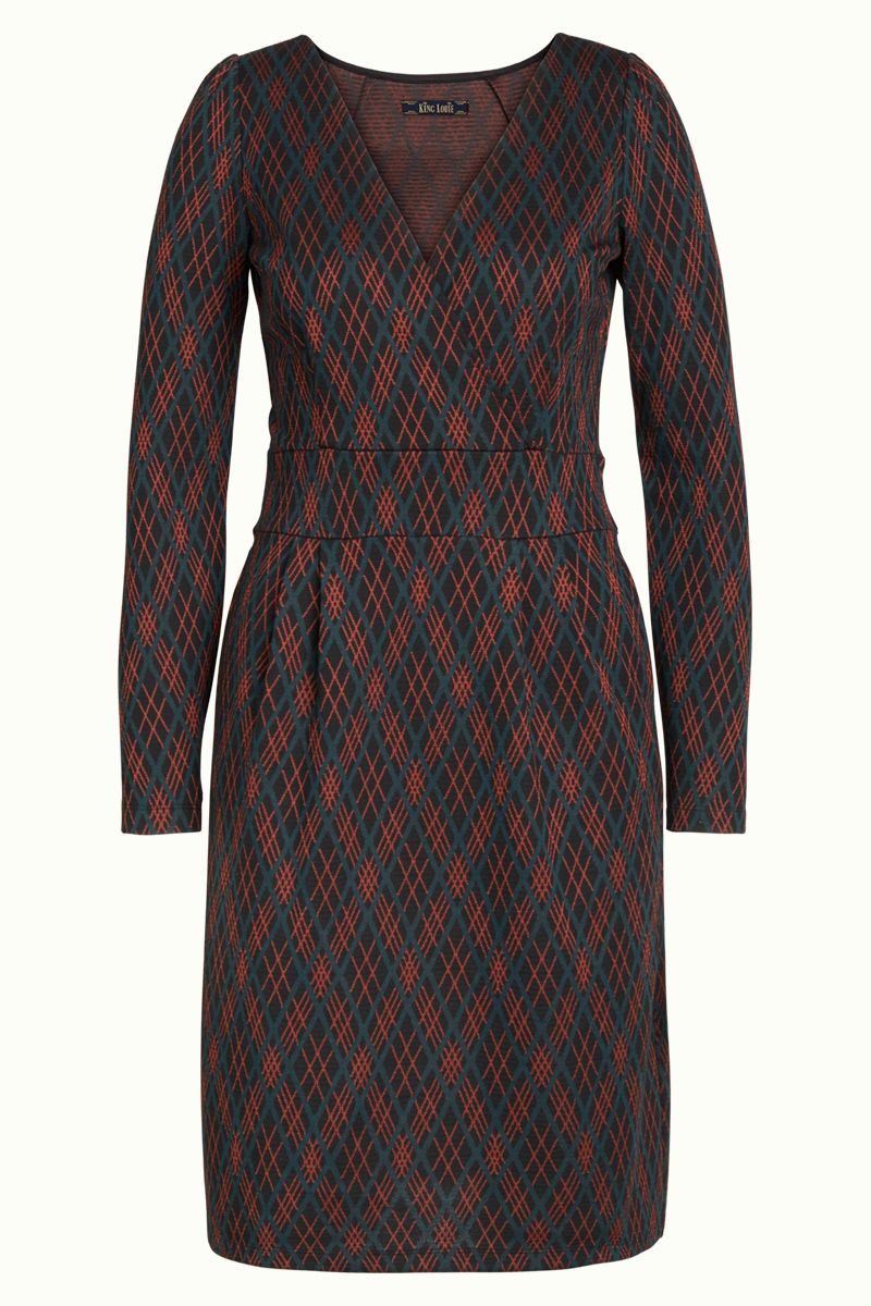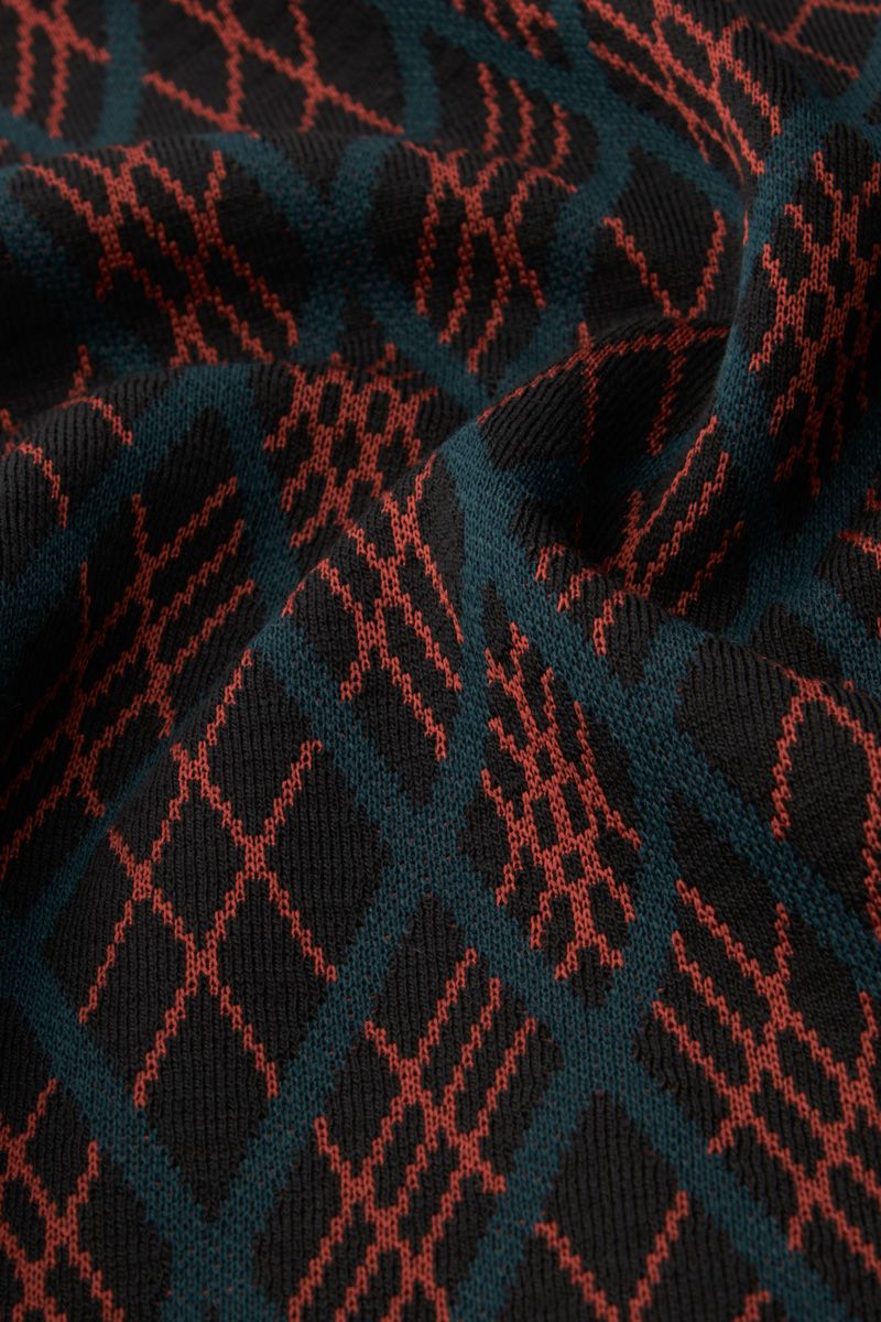Kleid mit Jacquard-Muster und taillierter Passform, V-Ausschnitt mit fixiertem Wickeleffekt, zwei Taschen mit Seiteneingriff, etwas dickerer, weicher Jacquard-Jersey