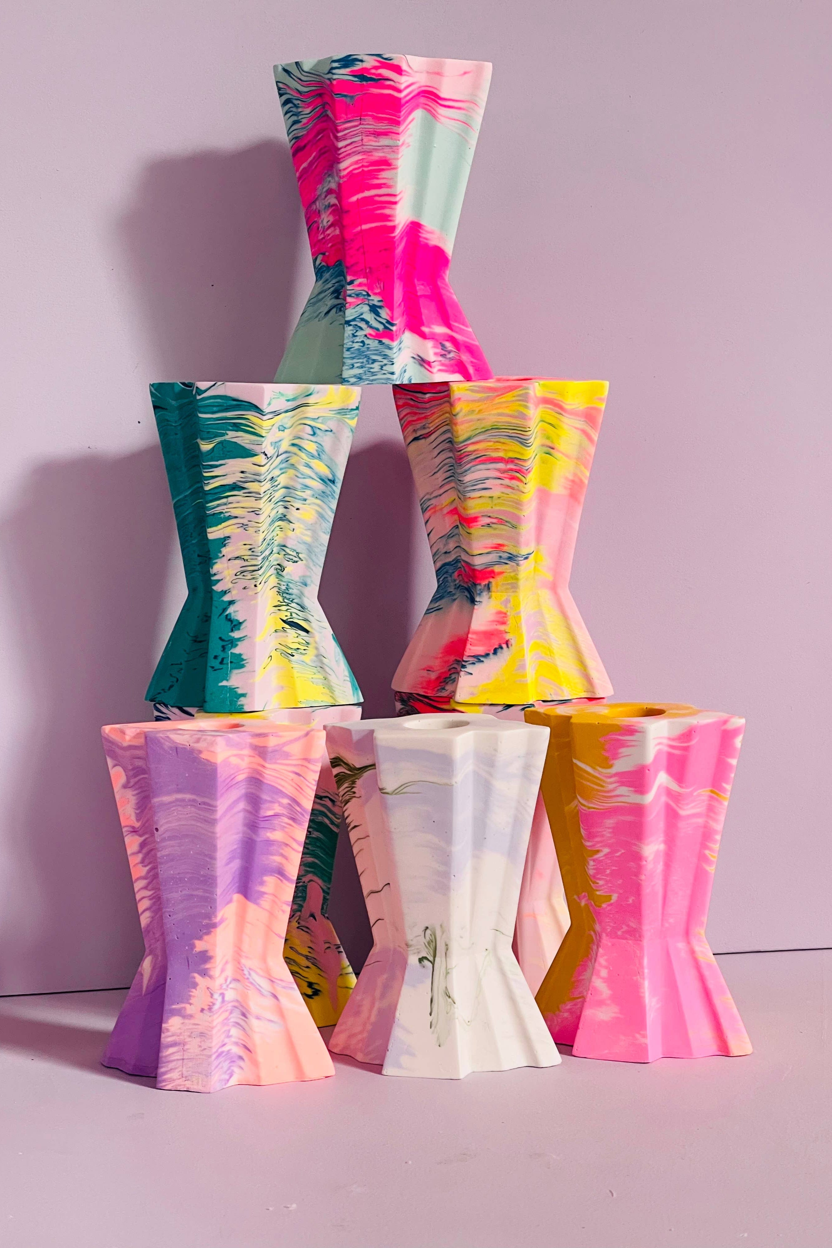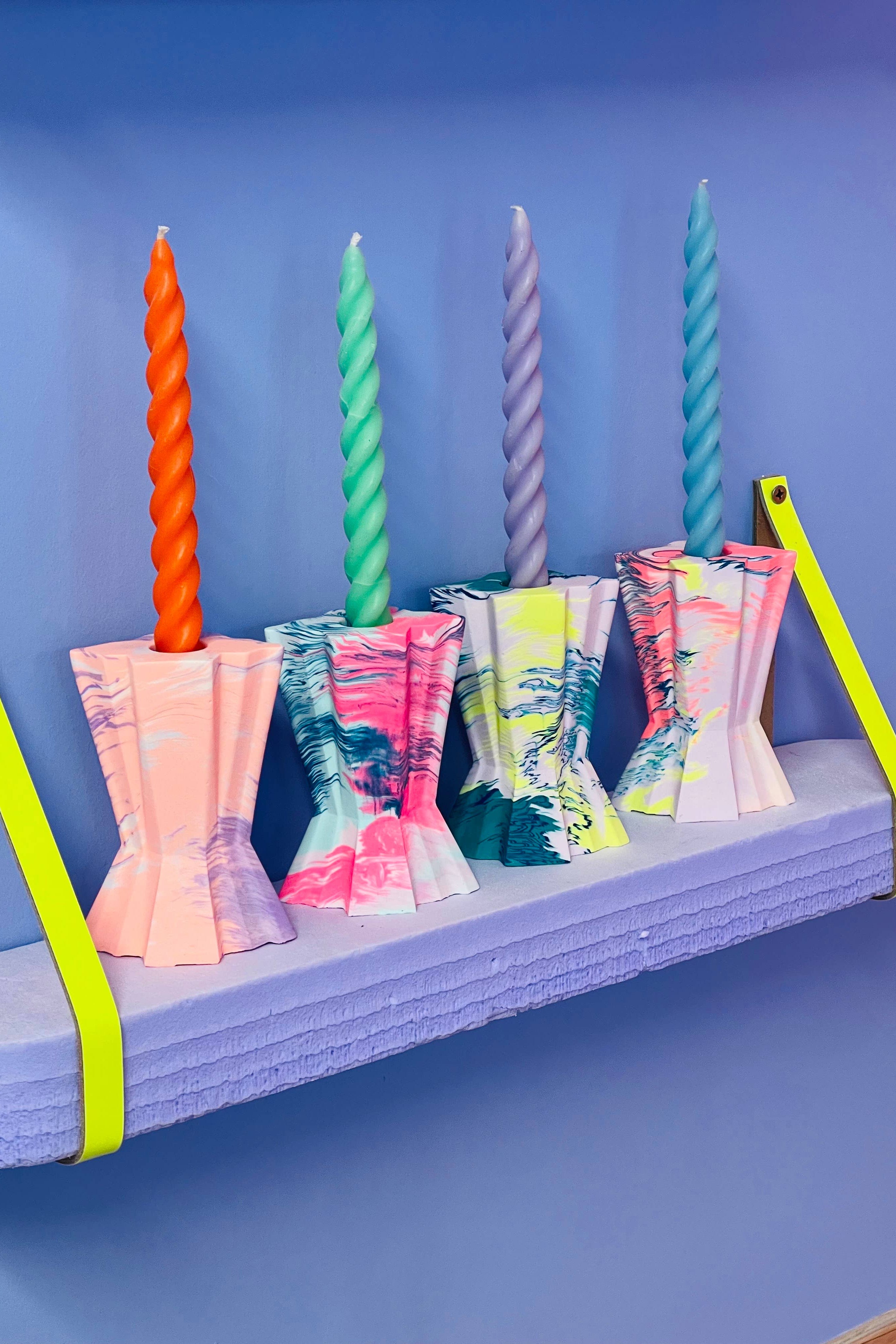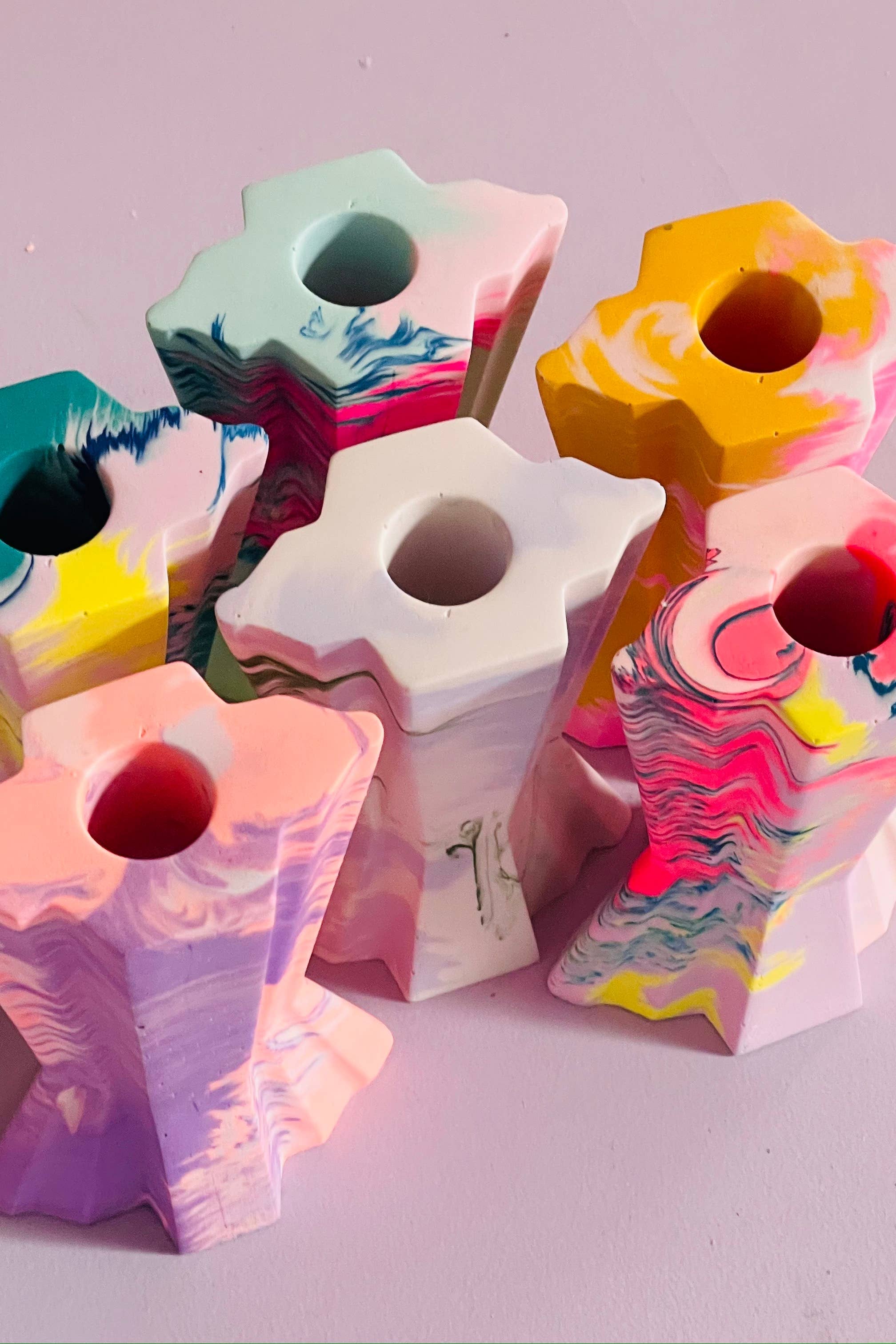 Dieser schöne Kerzenständer aus Jesmonit von Misshandled in lila und olivegrün peppt jeden Raum auf. Handgefertigt aus umweltfreundlichem Jesmonit-Mineralstein - Versiegelt mit einer ECO-Steinversiegelung auf Wasserbasis - Nur für den Gebrauch in Innenräumen.