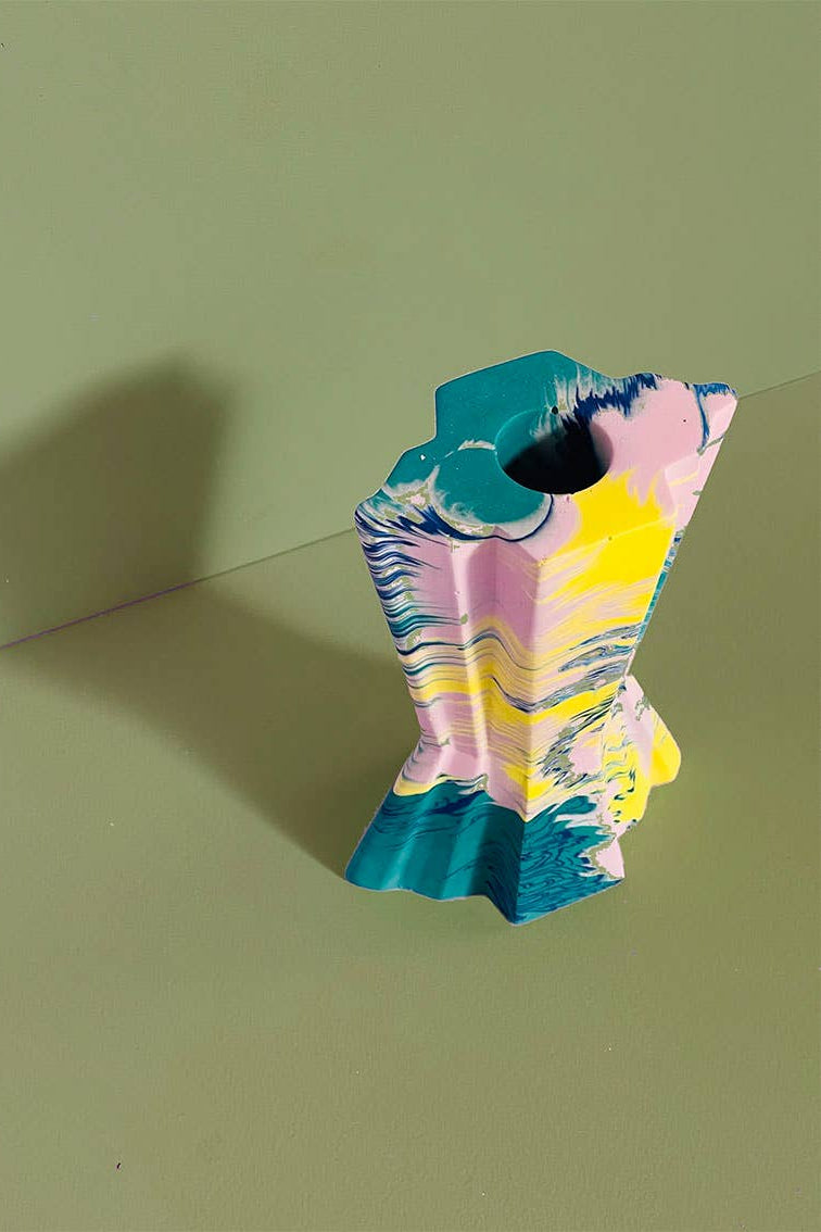 Jesmonit Kerzenständer in Smaragdgrün und Gelb