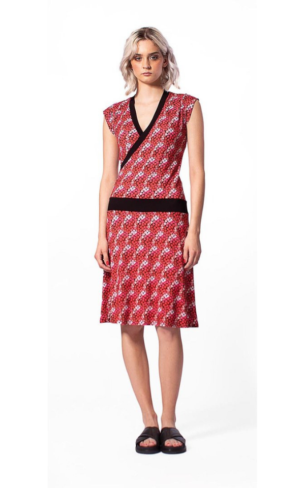 Sommerkleid aus weichem Jersey, Oberteil in Wickeloptik, Rockteil leicht ausgestellt, aus weichem Viskose Jersey, öko -Tex 100 zertifiziert