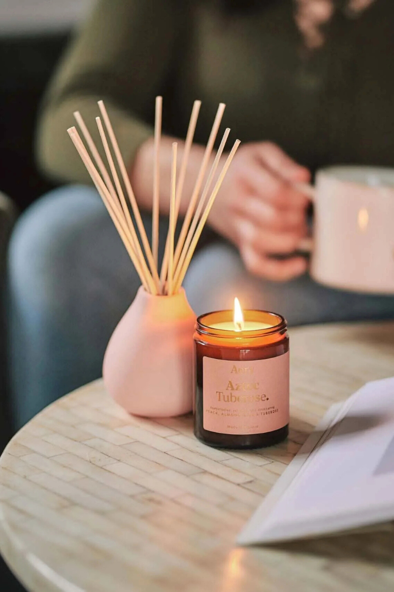 Ein Dufterlebnis mittlerer Intensität mit harmonisch aufgebauten Noten. Die Kopfnoten aus cremiger Mandelmilch und saftigem Pfirsich führen zu einem blumigen Herz aus Iris und Rose, bevor sich die Basis mit Tuberose, Tonkabohne und Amber entfaltet. Diese 140g Kerze aus 100% pflanzlichem Wachs wird in England hergestellt und bietet eine Brenndauer von etwa 30 Stunden. In vollständig recycelbarer Verpackung verkörpert sie Luxus und Nachhaltigkeit – vegan und tierversuchsfrei.