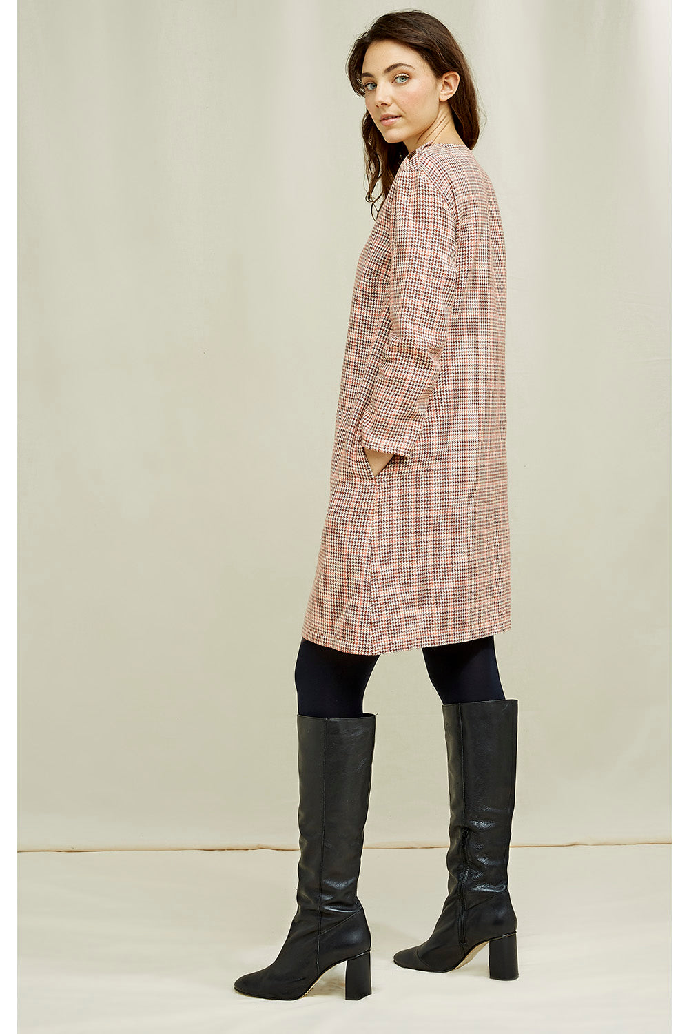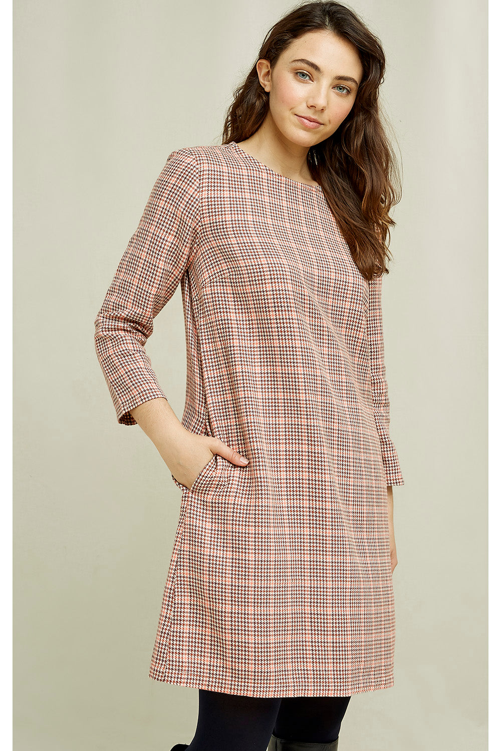 Erica Houndstooth Dress Brown Muti von People Tree