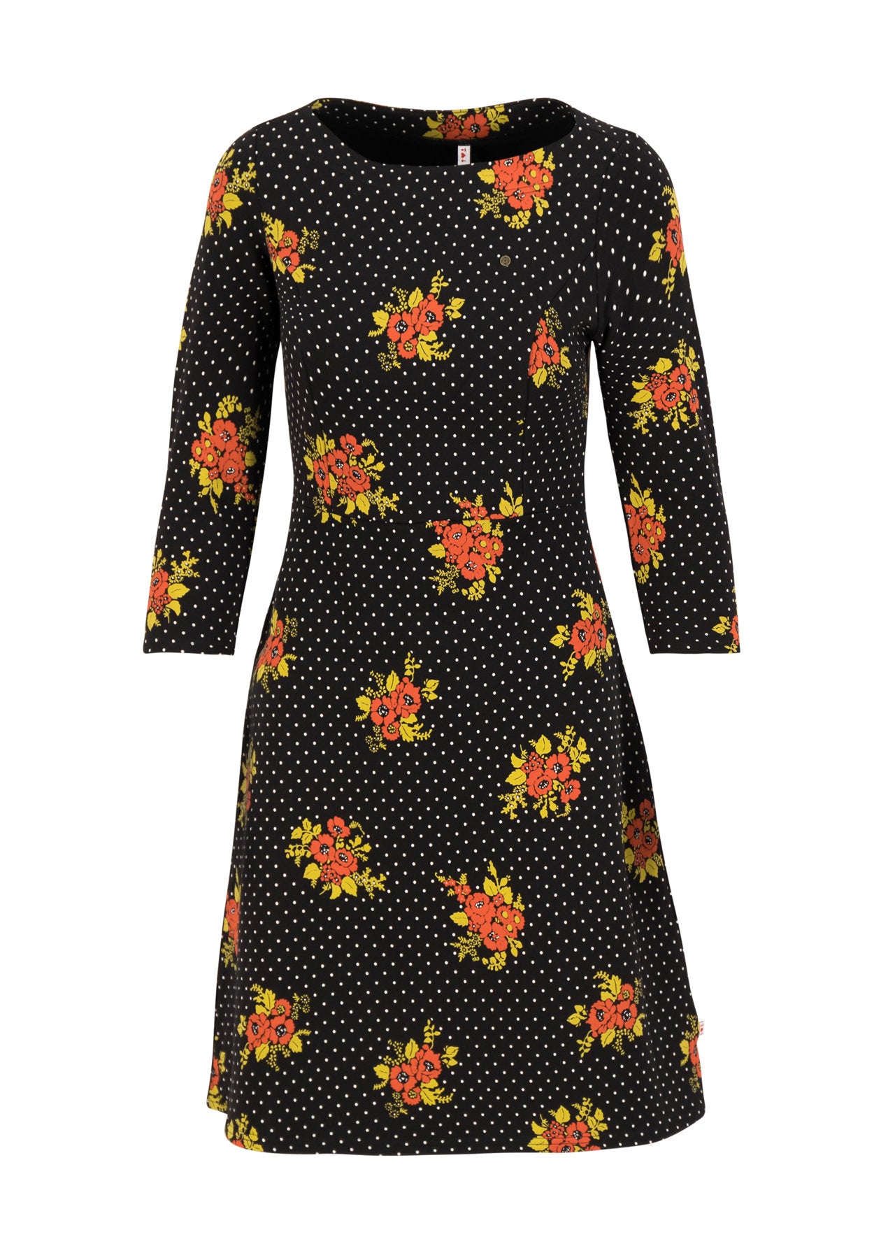 Anschmiegsames Muster-Print-Kleid aus grenzenlos-gemütlichem Bio-Baumwoll-Sweat mit leichtem Stretch-Anteil! Das figurnah geschnittene Kleid mit knieumspielender Länge und Wiener Nähten ist ein reizendes Alltags-Schmuckstück mit hohem Wohlfühlfaktor.