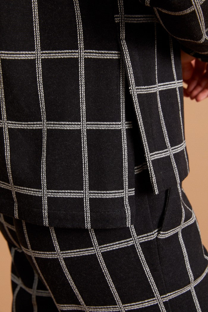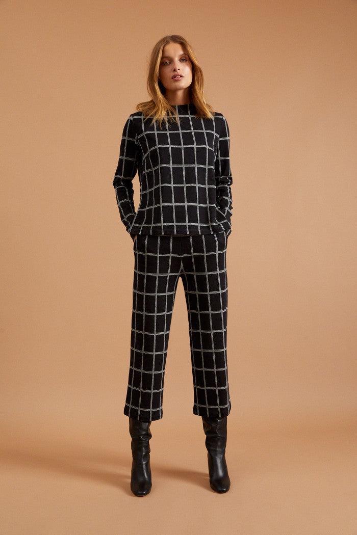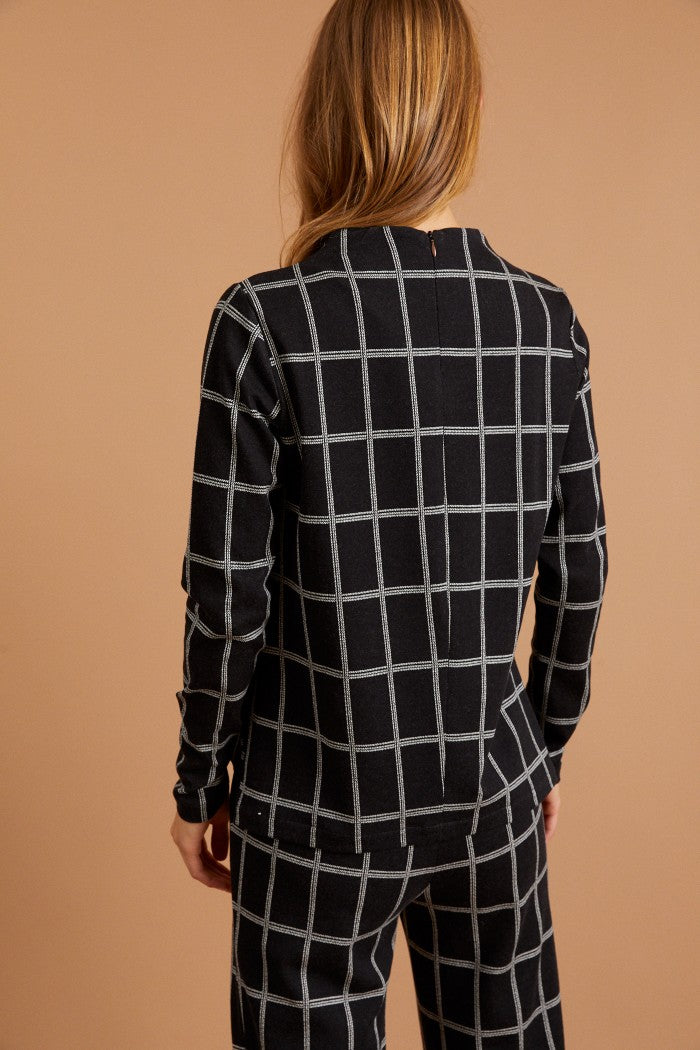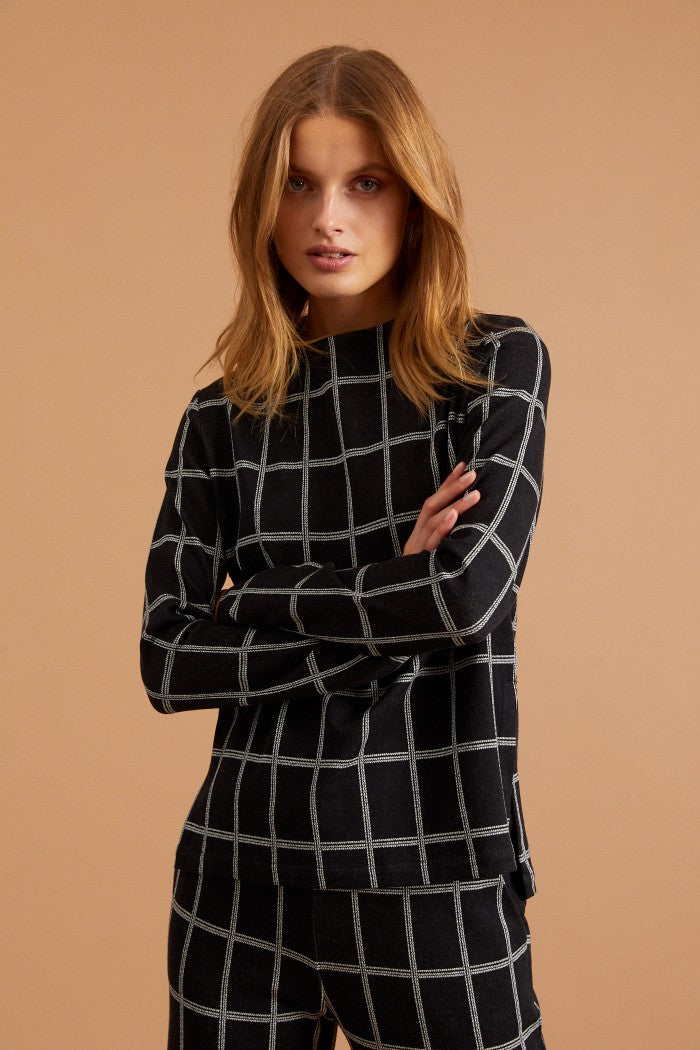 Langarmshirt in gerader Passform mit Seitenschlitzen. Karomuster. Der Kragen ist angeschnitten mit einem verdeckten Reißverschluss .
