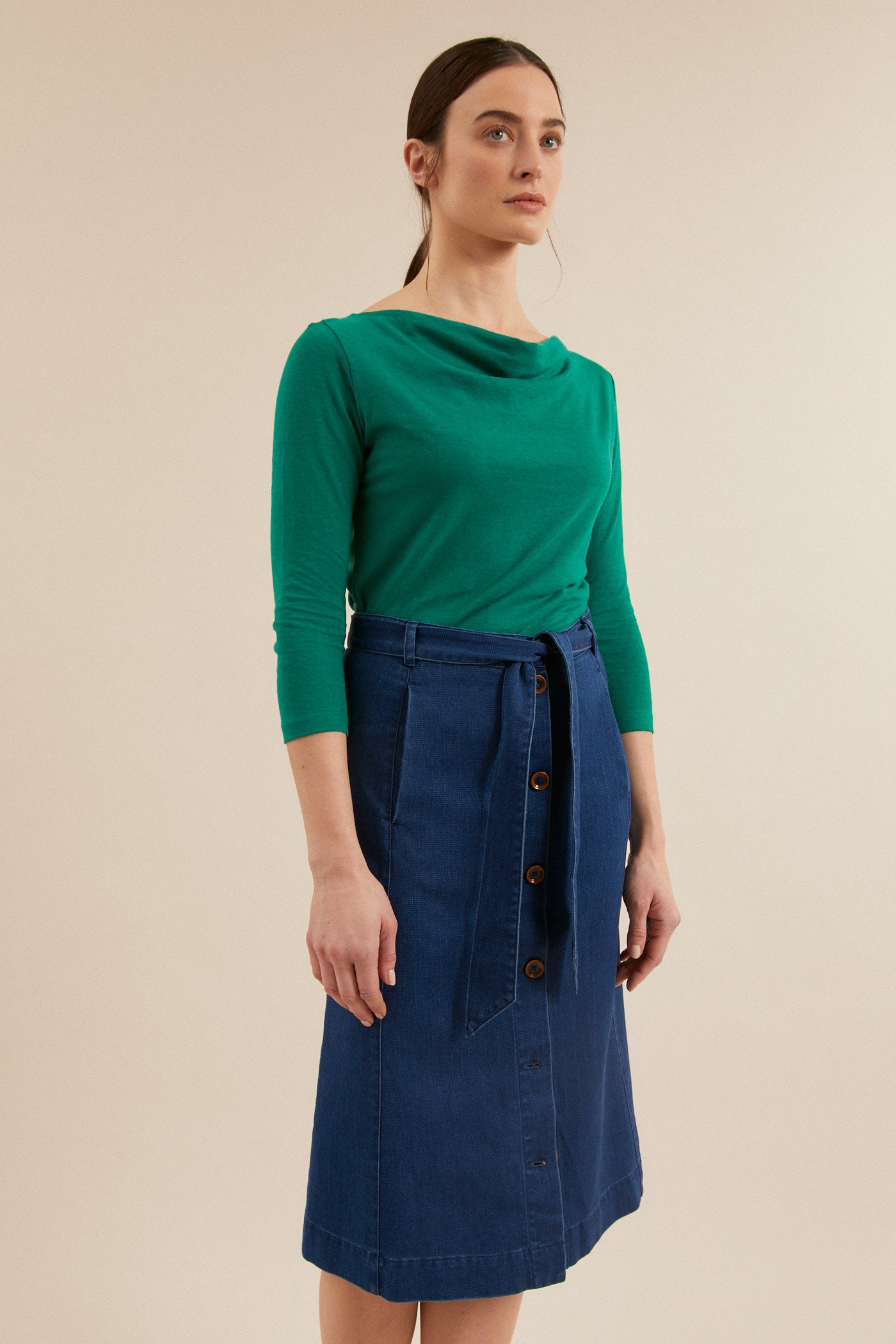 Der weich fließende Hanf-Jersey ist bei LANIUS etabliert als unverzichtbare Hochsommer-Qualität. Leger und pur sind die Styles langlebige Begleiter Ihrer sommerlichen Garderobe und lassen sich vielseitig kombinieren. Baumwolle aus ontrolliert biologischem Anbau und Hanf wirken temperaturausgleichend und sorgen für den leichten Fall der Ware. Der Wasserfallausschnitt umspielt edel das Dekolleté ohne zu viel Haut zu zeigen.