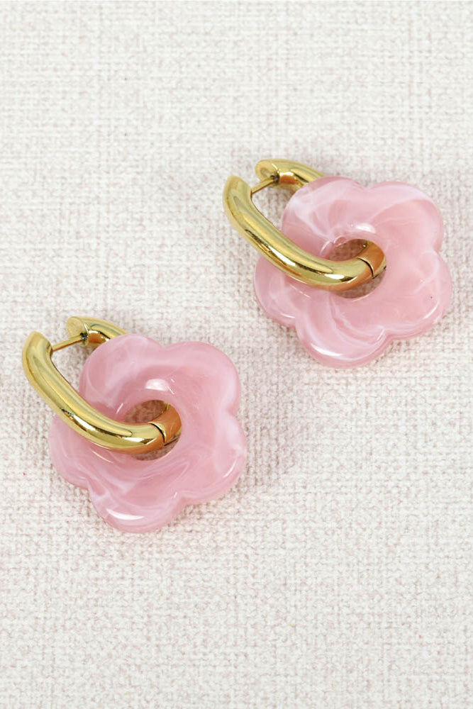 Ovale Hoops aus goldfarbenen Edelstahl und Blumenanhänger aus Harz.