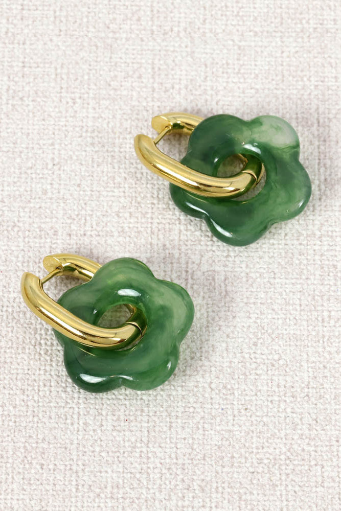 Ovale Hoops aus goldfarbenen Edelstahl und Blumenanhänger aus Harz.