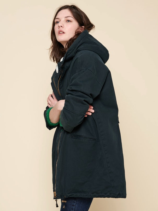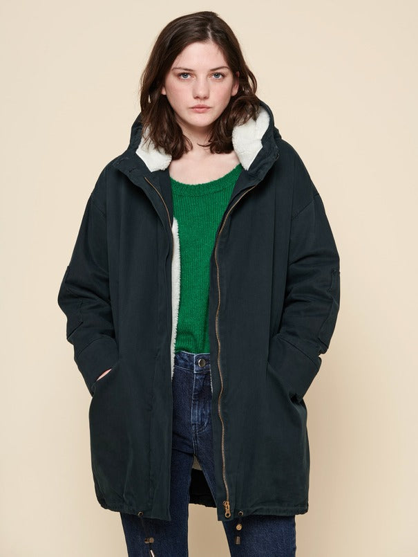 Gefütterter Oversize-Parka mit seitlichen Eingriffstaschen, Zugband am unterem Saum, gefüttert, mit Kapuze, durchgehender Reissverschluss
