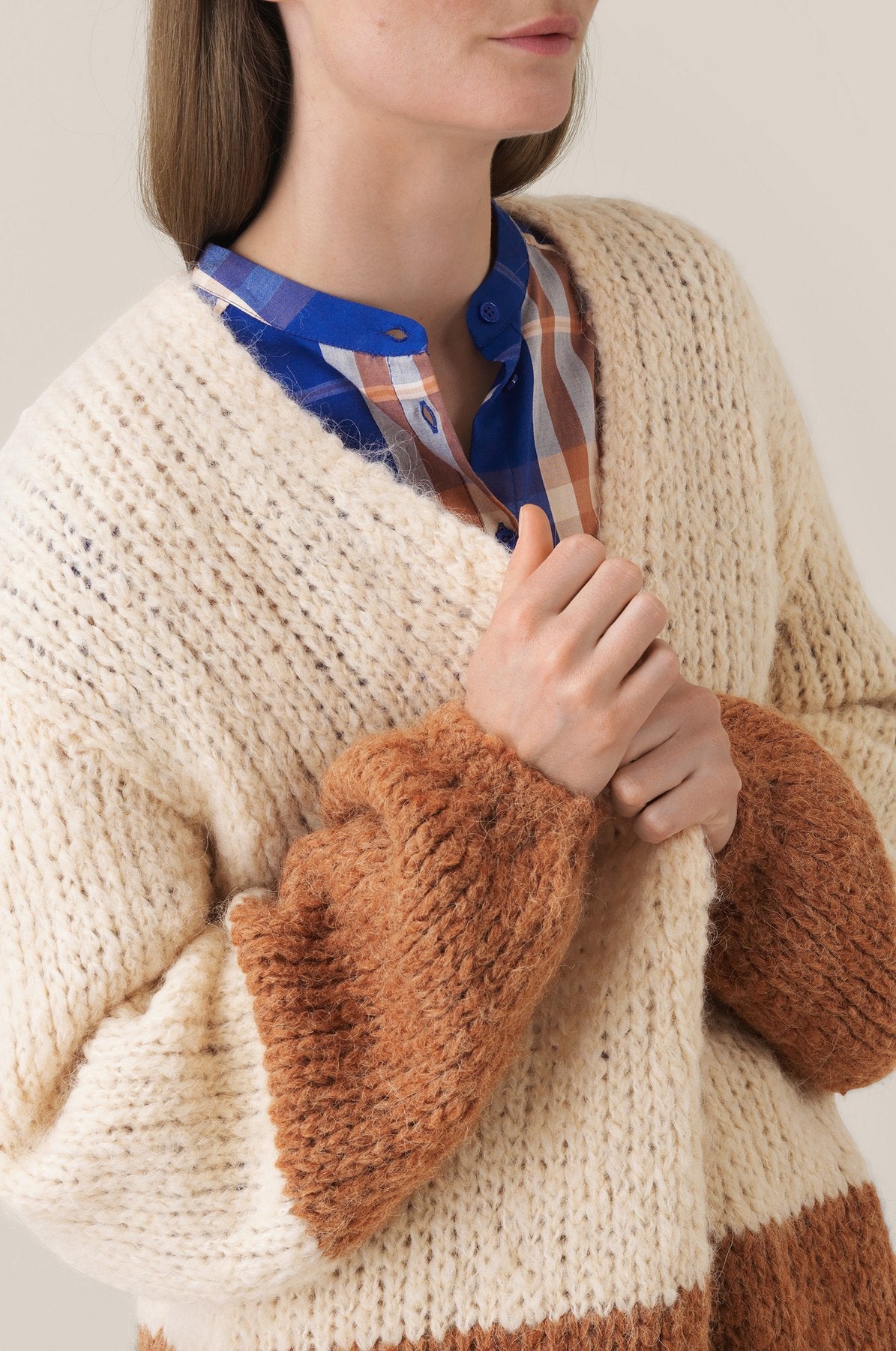Dieser Cardigan ist aus einem weichem Mischgarn aus Wolle und Alpaka gefertigt und hat einen lässigen, handgestrickten Look. Der Cardigan hat Drop Shoulders und Volumen in den Ärmeln sowie eine legere Passform.