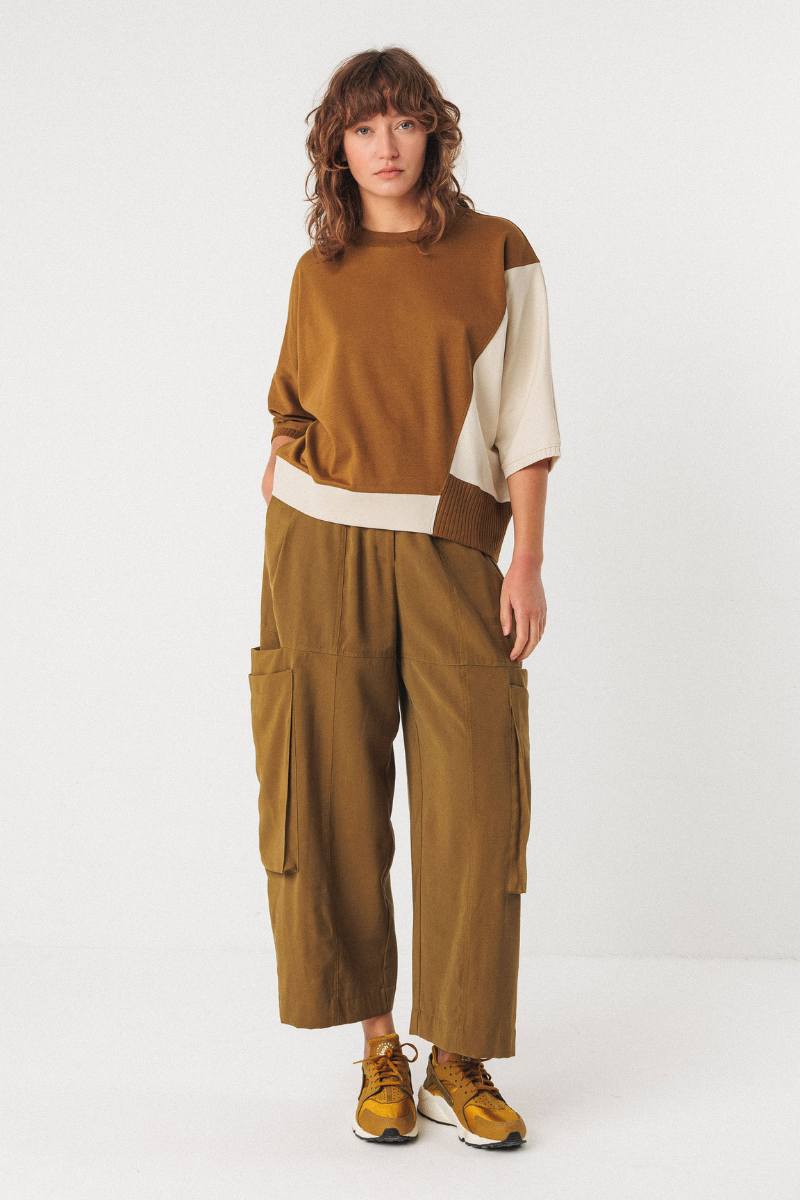 Dieses locker geschnittene T-Shirt von SKFK besticht durch seine Fledermausärmel und den asymmetrischen Schnitt, der für einen modernen Look sorgt. Kontrastierende Einsätze und eine gerippte Einfassung verleihen dem Shirt eine besondere Note und unterstreichen Ihren individuellen Stil. Ideal für alle, die Komfort mit trendigem Design verbinden möchten.