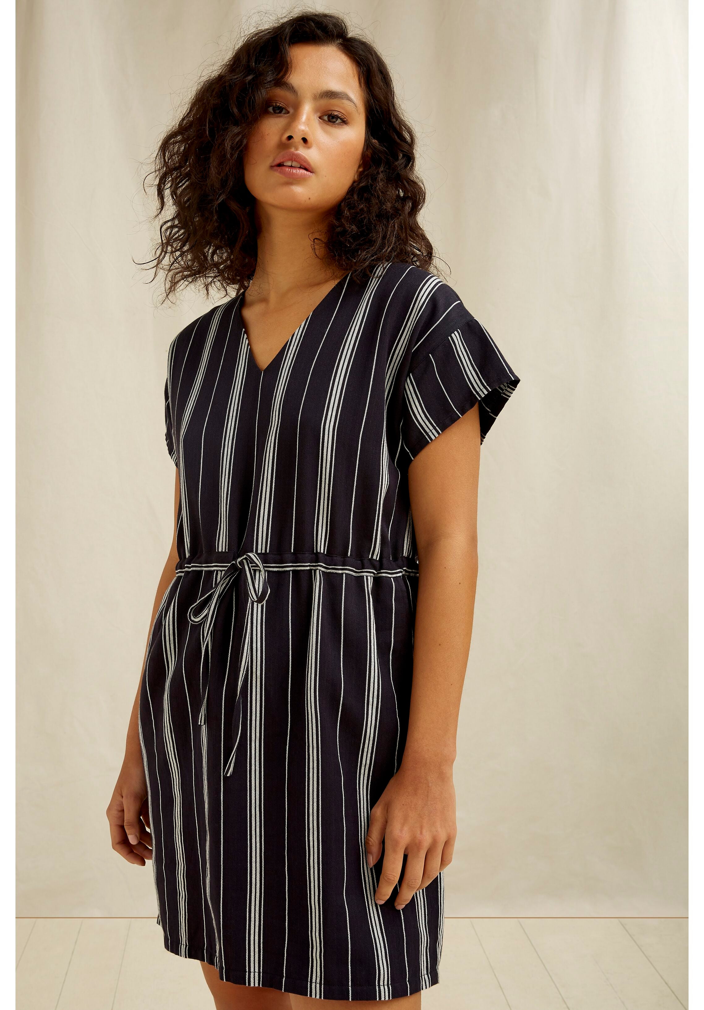 Kurzes Kleid mit anpassbarer Taille und Seitentaschen.